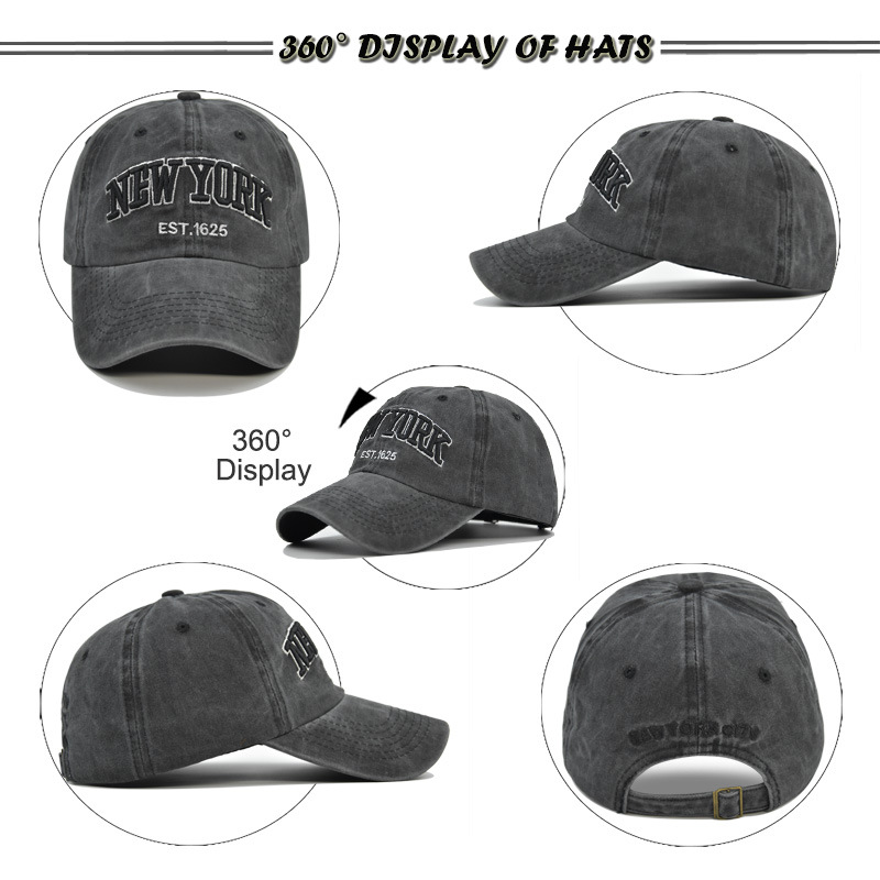 Vintage New York Est. 1625″ Washed Cotton Baseball Cap – Adjustable & Unisex(Gray)”