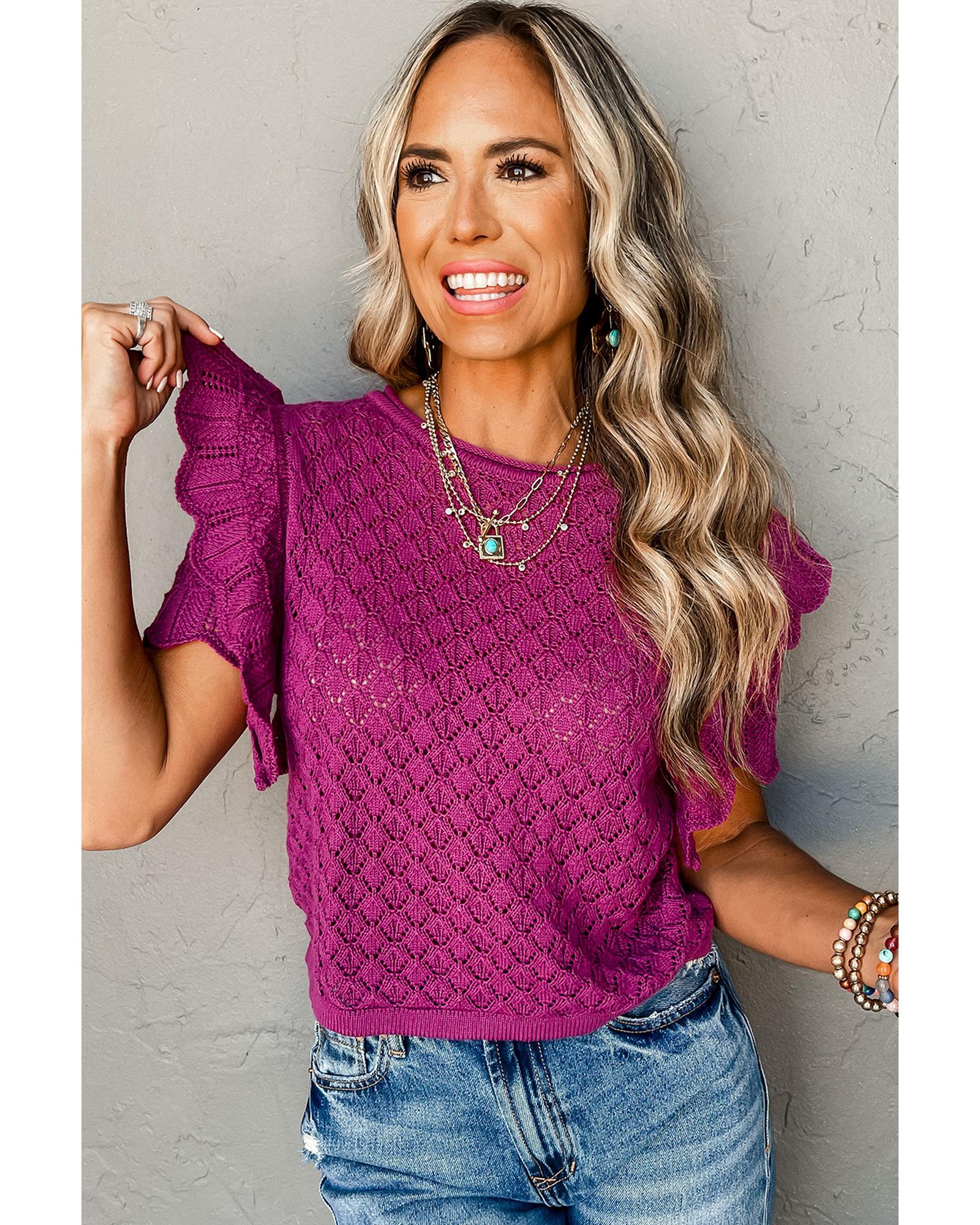 - Violet Ruffled Short Sleeve Textured Knit Sweater