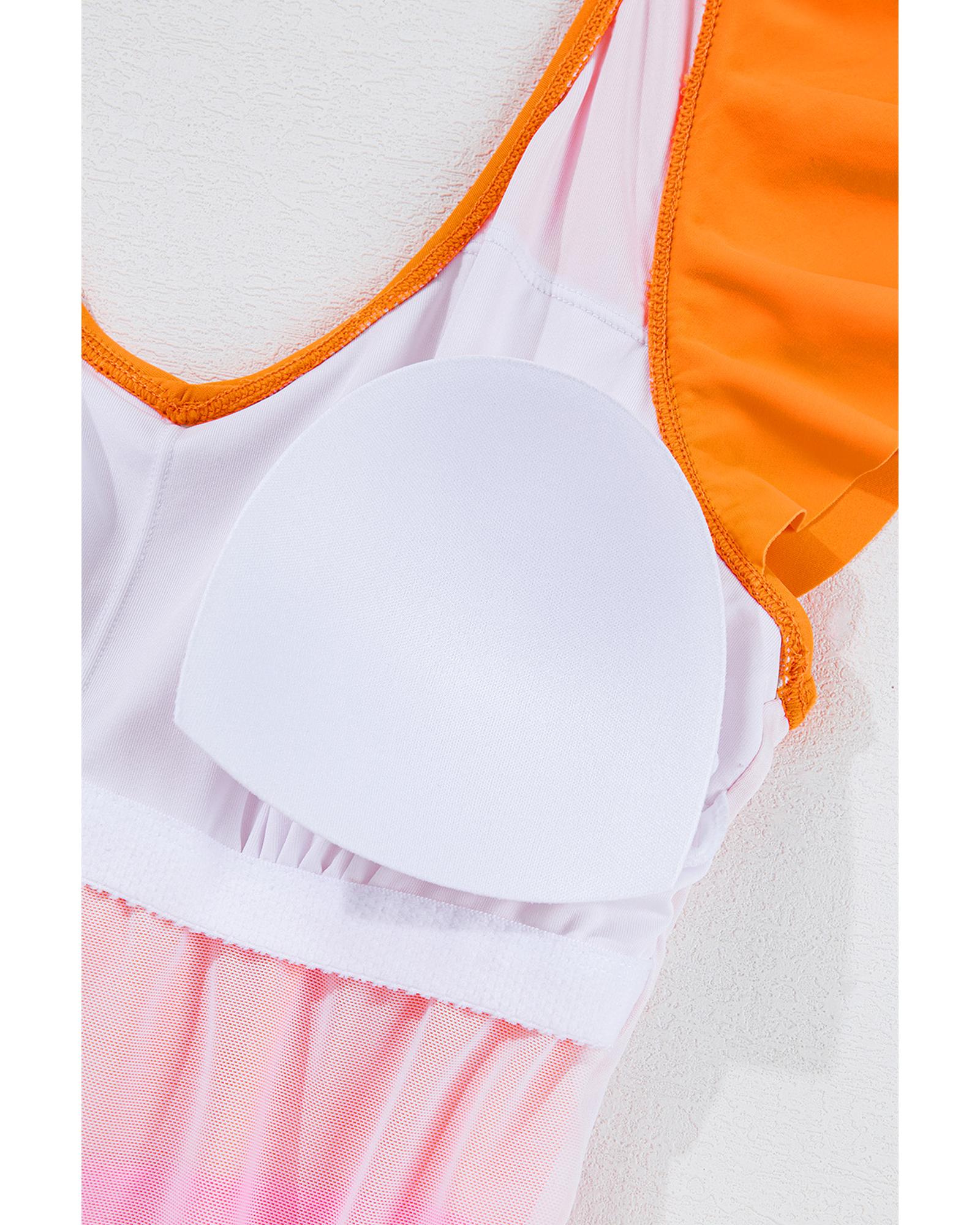 Vitality Orange Color Block Ruffled Knotted Backless One Piece Swimsuit – XL