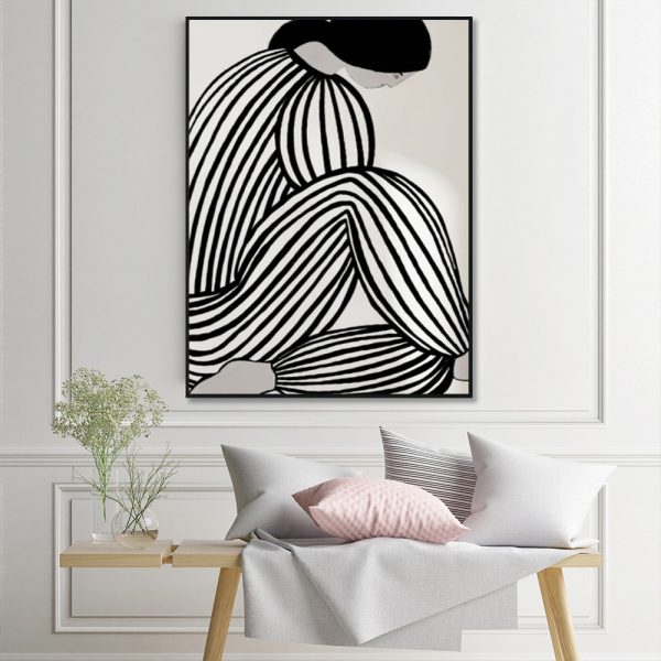 Wall Art 60cmx90cm Mid Century Figure Black Frame Canvas