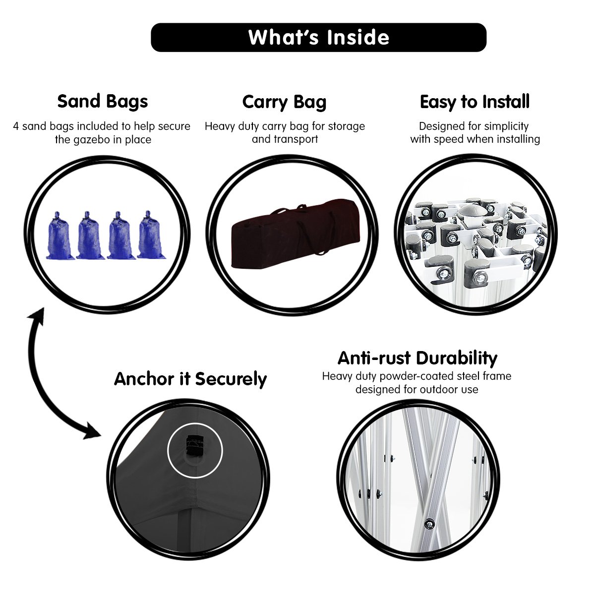 Wallaroo Gazebo Tent Marquee 3×3 PopUp Outdoor Black