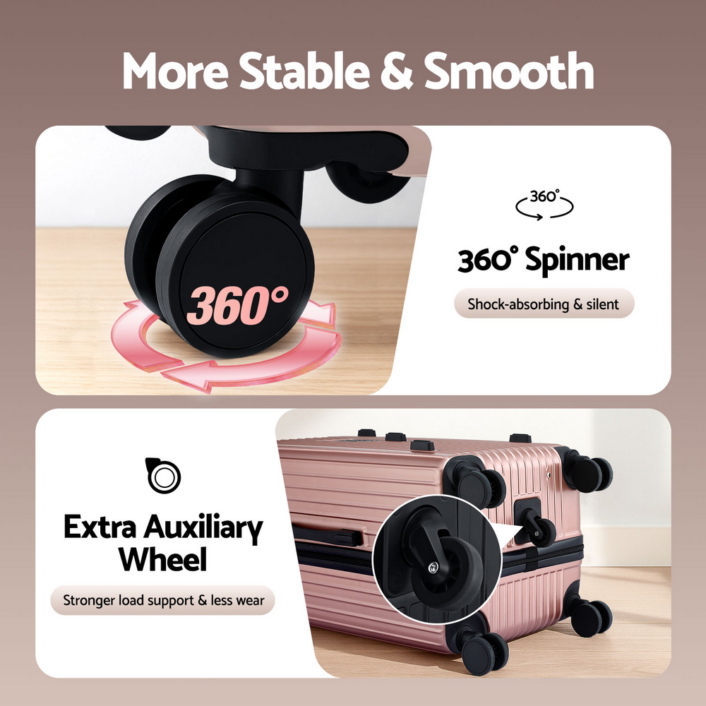 Wanderlite 28″ Trunk Luggage Suitcase Travel 5 Wheels Type-C Port TSA Rose Gold