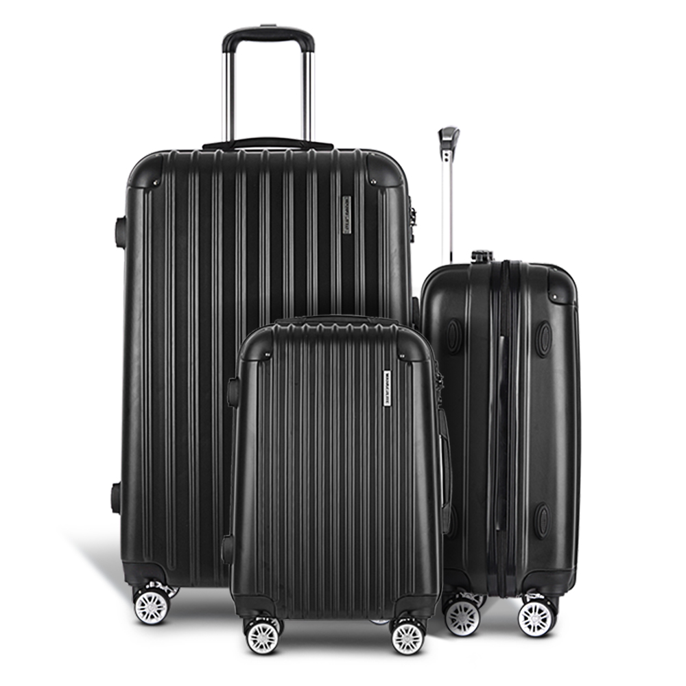 Wanderlite 3 Set Luggage 20-24-28 Inch with Zipper Lock Carry On Hard Shell Travel Suitcase Luggage Case Black