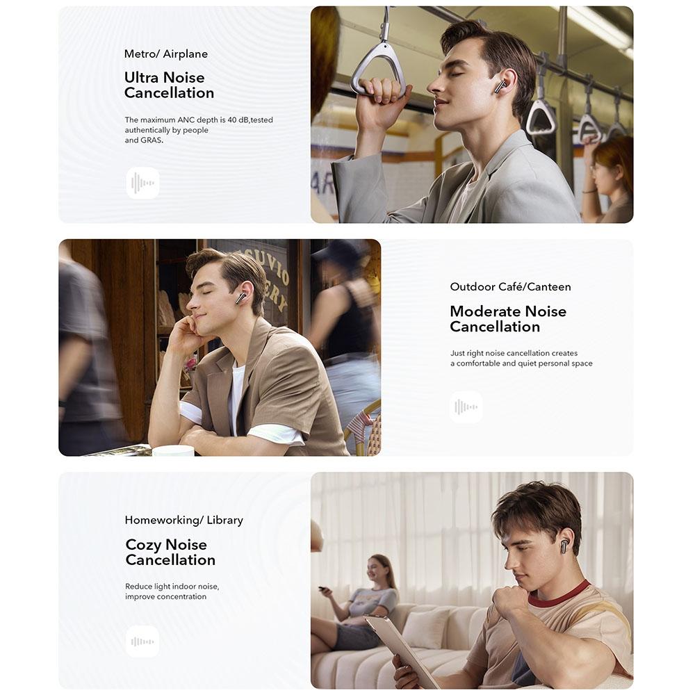 Waterproof Bluetooth Earbuds with Active Noise Reduction – White