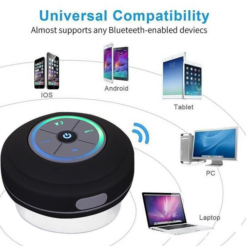 Take your tunes anywhere—even into the shower—with this waterproof Bluetooth speaker featuring LED lighting, FM radio, and a powerful 3W subwoofer. With a built-in suction cup, it easily mounts to bathroom tiles, mirrors, or glass. Thanks to Bluetooth 5.0 technology, you can stream music from any Bluetooth-enabled device within 10 metres. The IPX4 waterproof rating protects against water splashes, making it ideal for showers, poolsides, or outdoor use. This compact wireless shower speaker also includes hands-free calling, TF card playback, and a rechargeable battery for convenient portability and everyday entertainment.