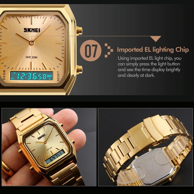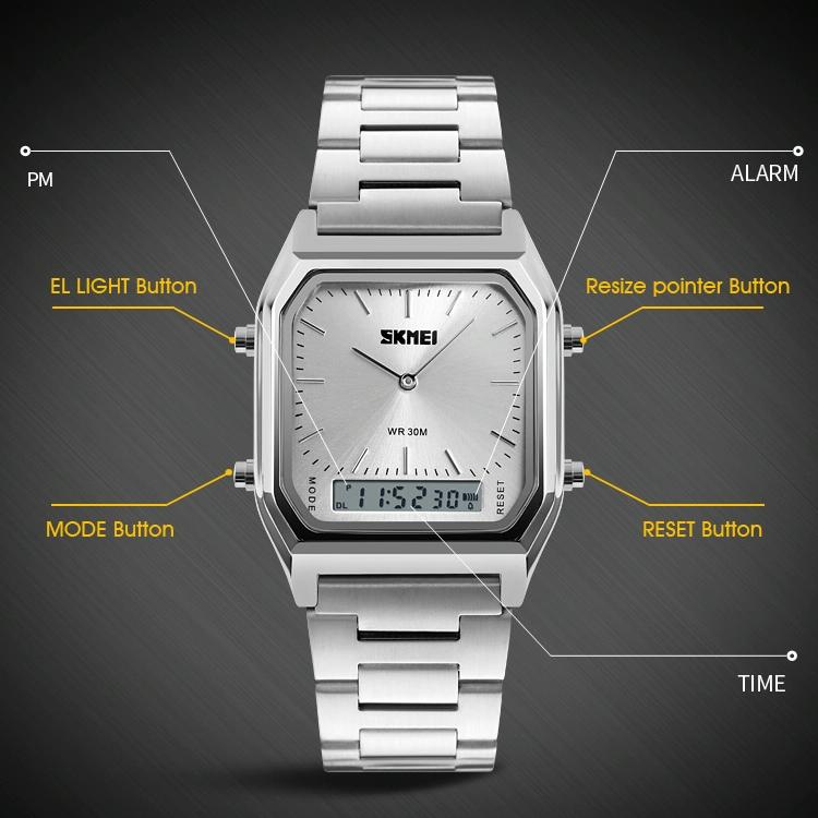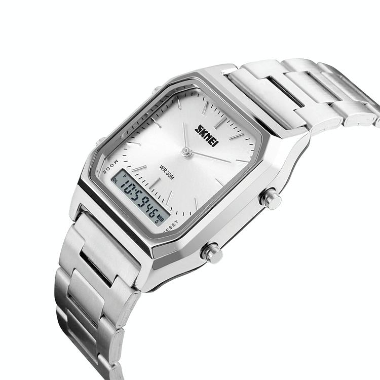 • 1 x 1220 Multifunctional Men Outdoor Business Noctilucent Waterproof Double Display Steel Watchband Wrist Watch