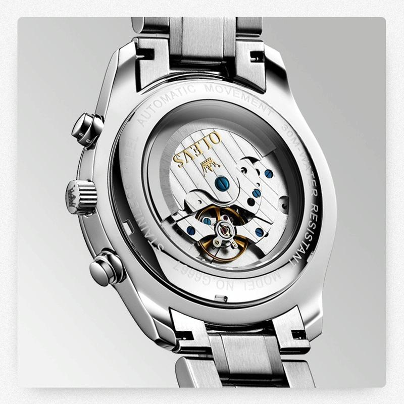 Waterproof Luminous Mechanical Watch for Men – Multifunction – Steel Band + Gold White