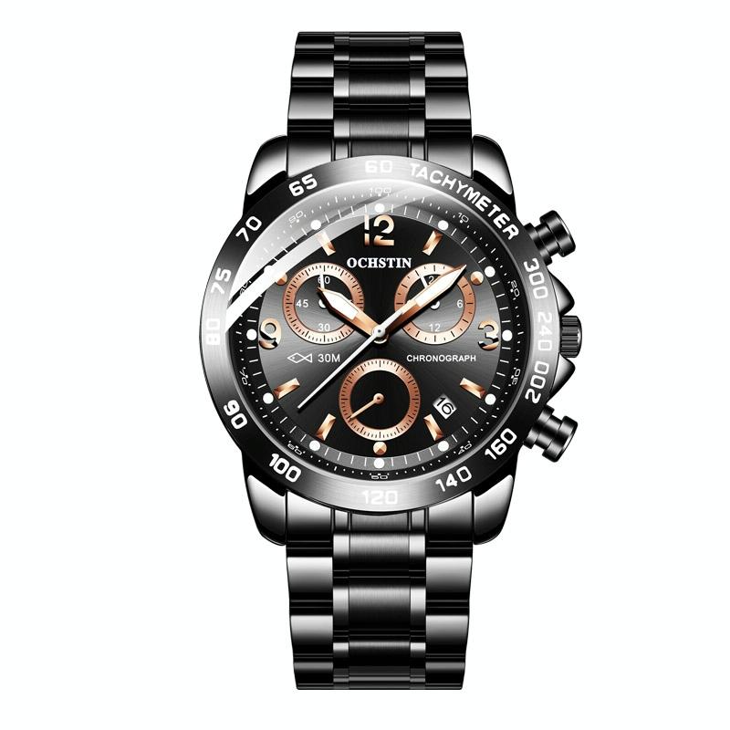 Waterproof Luminous Men Watch with Steel Strap – Black 02