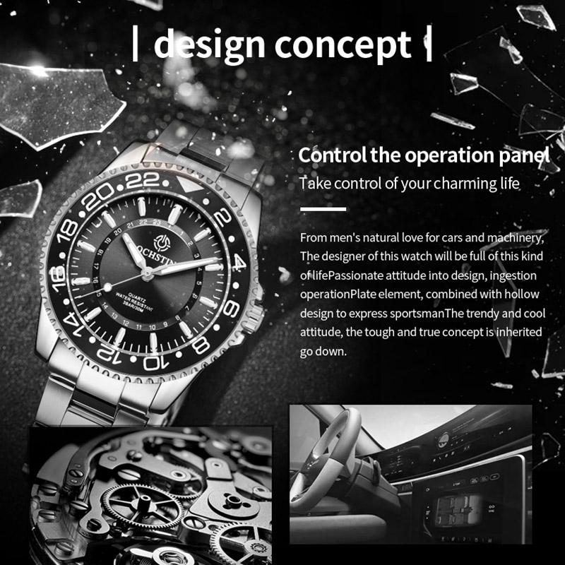 Waterproof Luminous Men Watch with Steel Strap – Multifunctional – Black + Silver