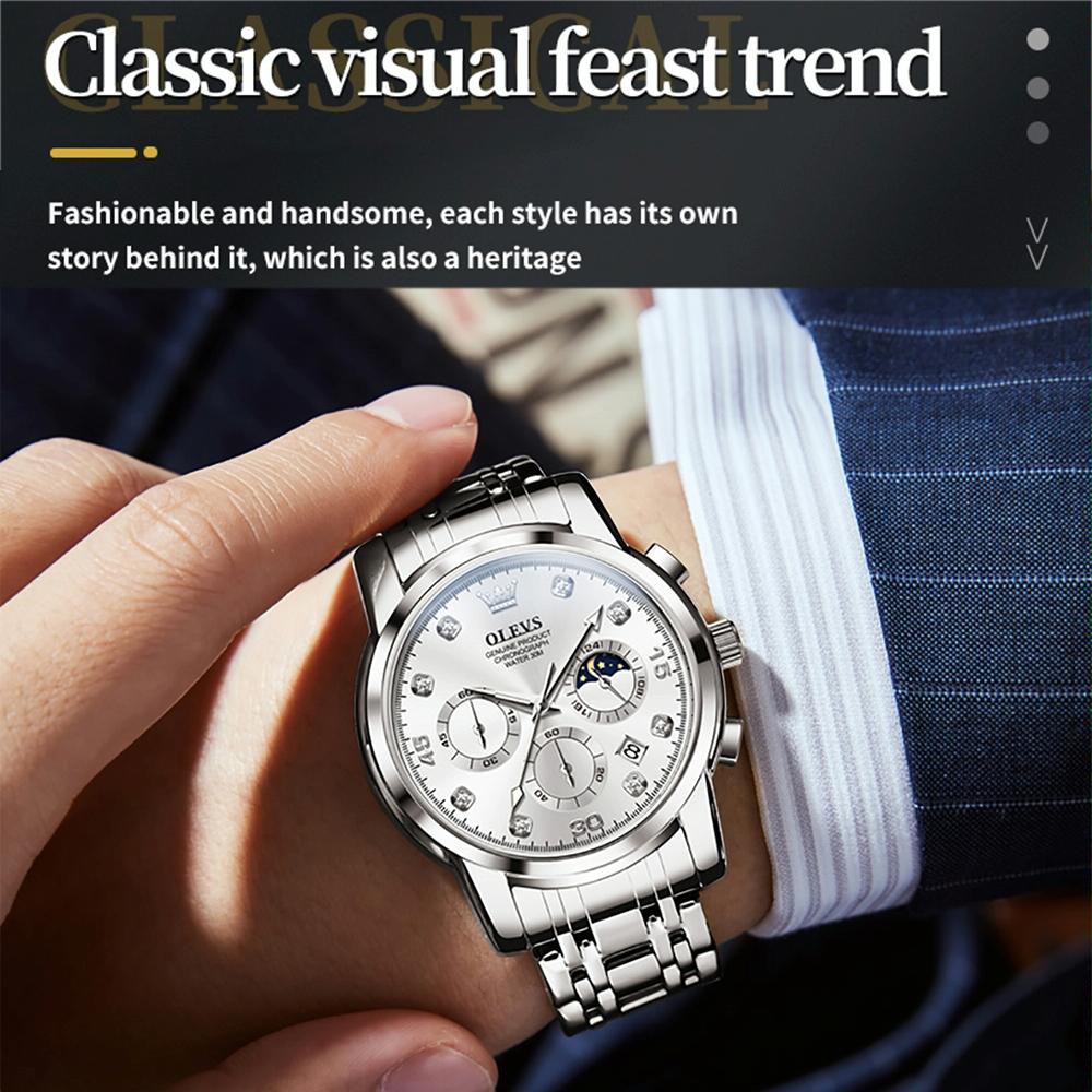 • Three-eye chronograph dial design for sports timing and calendar functions