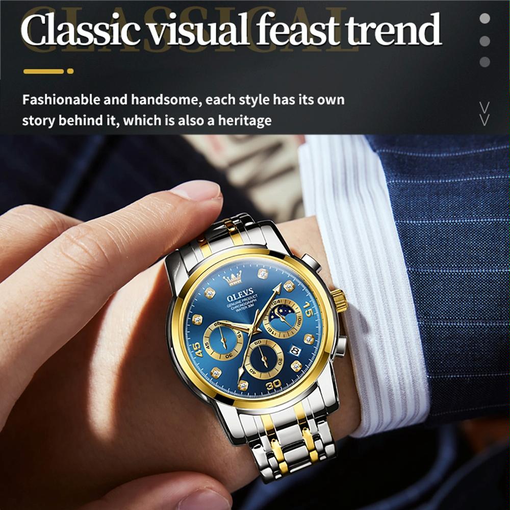 Waterproof Luminous Quartz Watch for Men – Multifunctional – Blue + Gold
