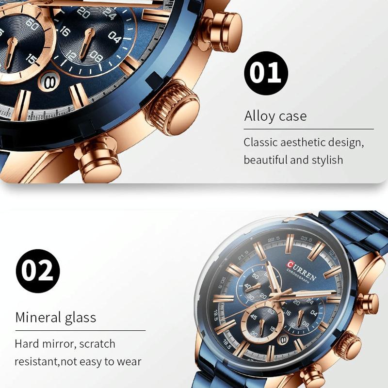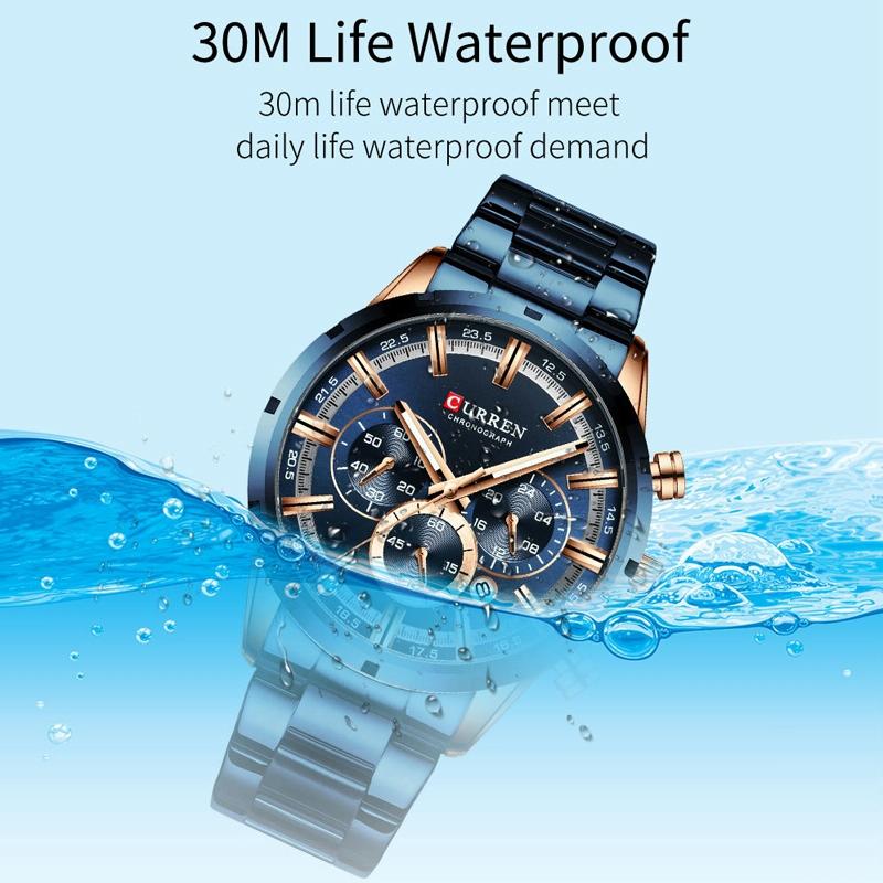Waterproof Men Business Watch with Quartz Movement and Steel Belt – Rose Shell Blue