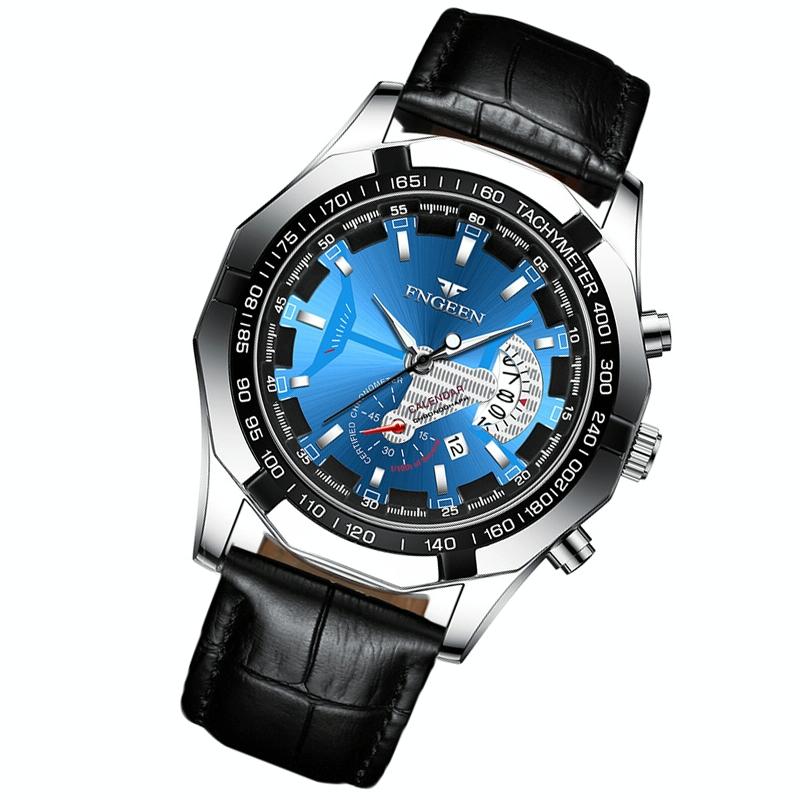 Waterproof Men Calendar Watch – Black Leather Full Gold Golden Surface