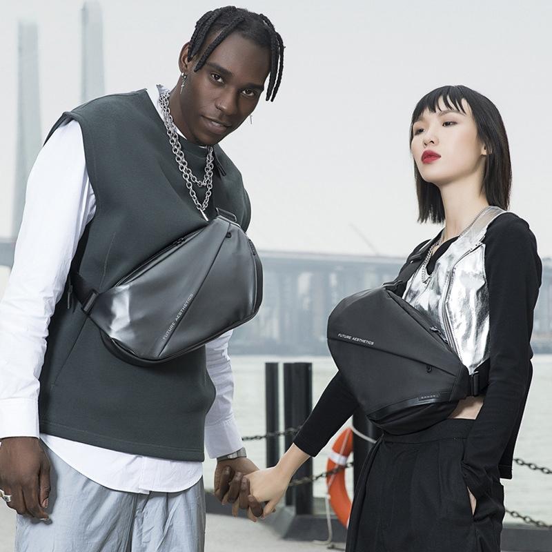 Waterproof Men Crossbody Chest Bag Epithelium Coating 35X19X8.5Cm Black