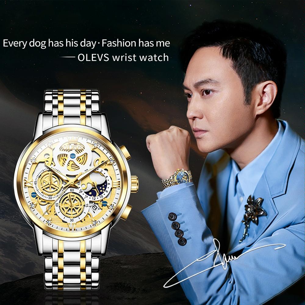 Waterproof Multifunctional Men Quartz Watch – Hollow Design – Black + Gold