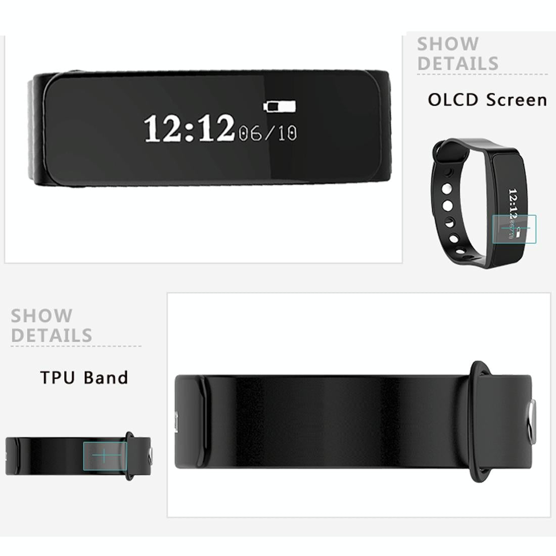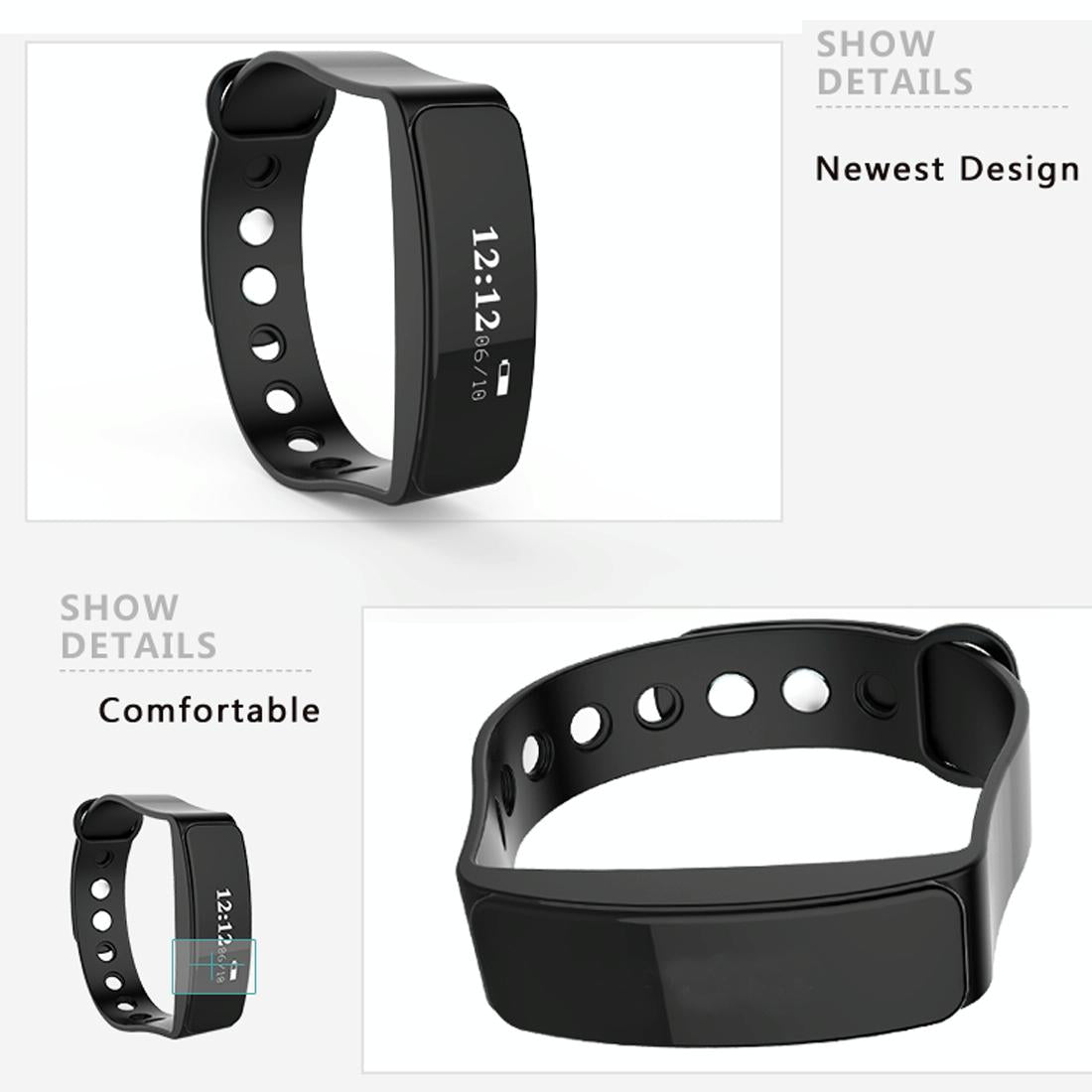 Waterproof Oled Bluetooth Smart Bracelet With Pedometer And Remote Capture For Android / Ios – Black