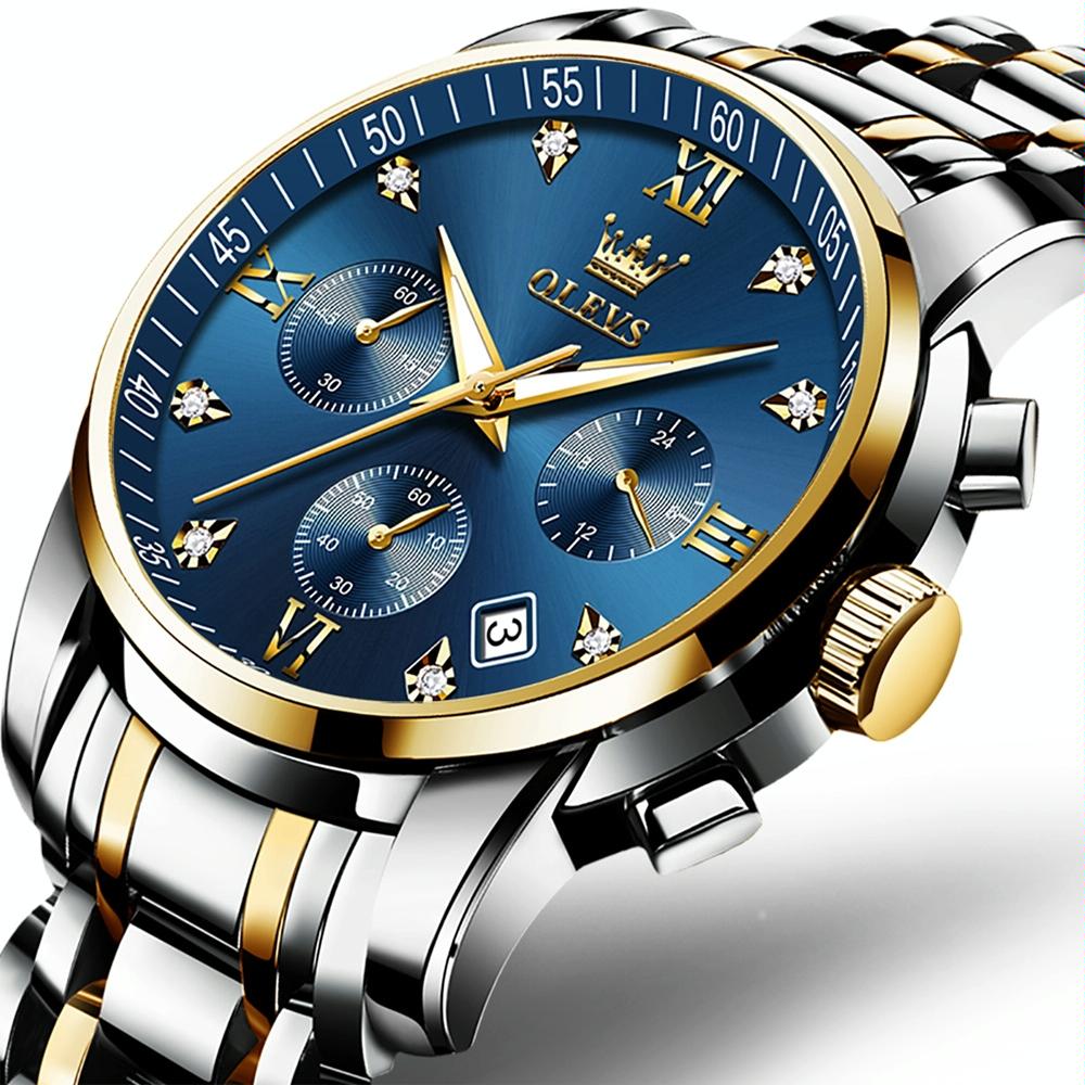 Waterproof Quartz Watch for Men – Multifunctional Business Design – Blue + Gold
