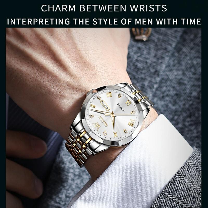 Waterproof Quartz Watch for Men with Luminous Dial – Black + Gold