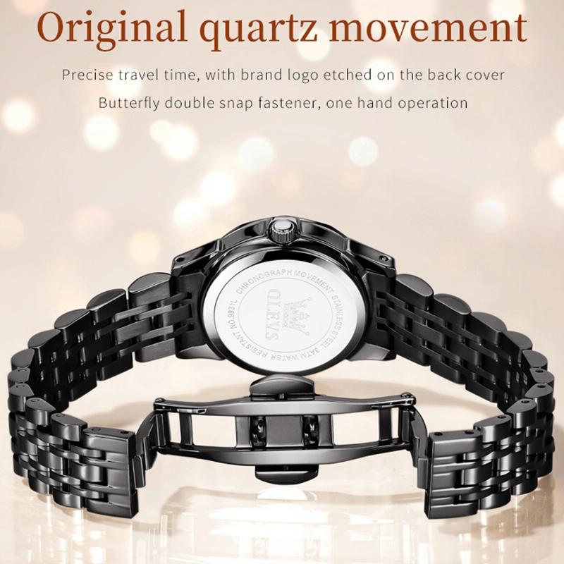 Waterproof Quartz Watch with Butterfly Buckle for Women – Black + Gold