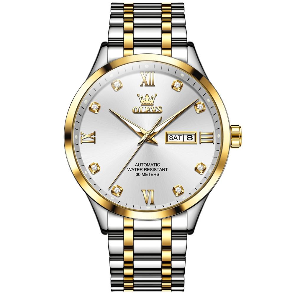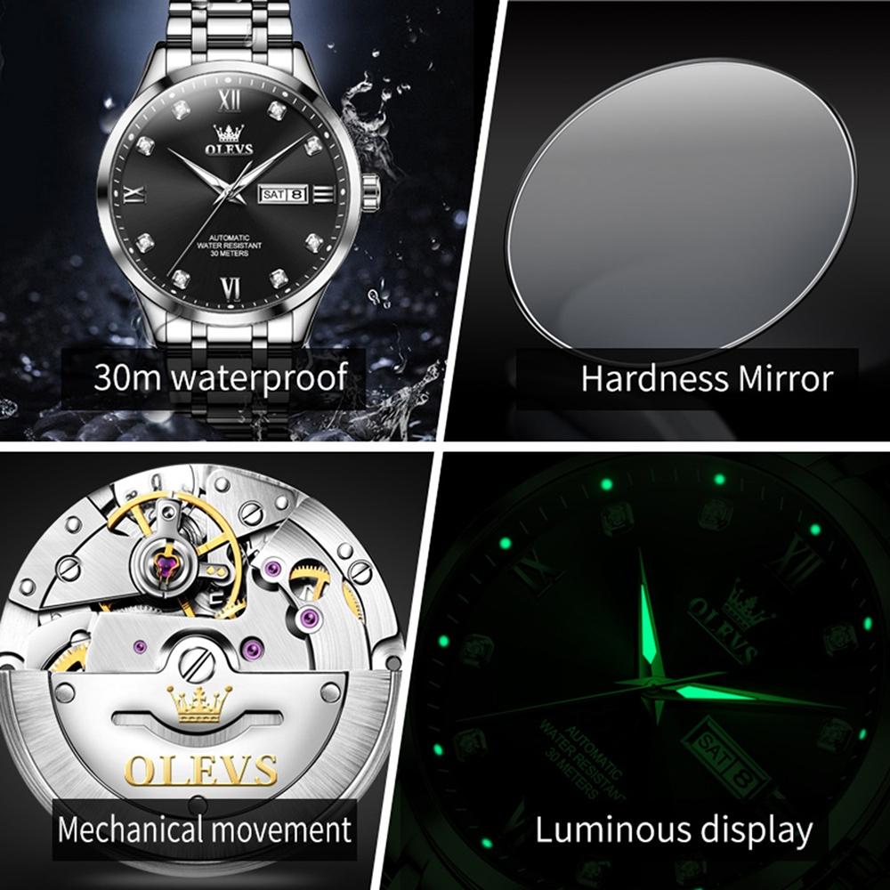 Waterproof Quartz Watch with Diamond Roman Scale for Men – Black + Silver