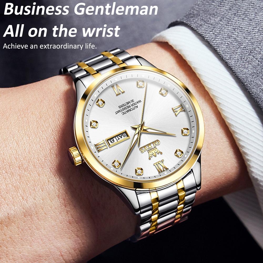 Waterproof Quartz Watch with Diamond Roman Scale for Men – White + Gold