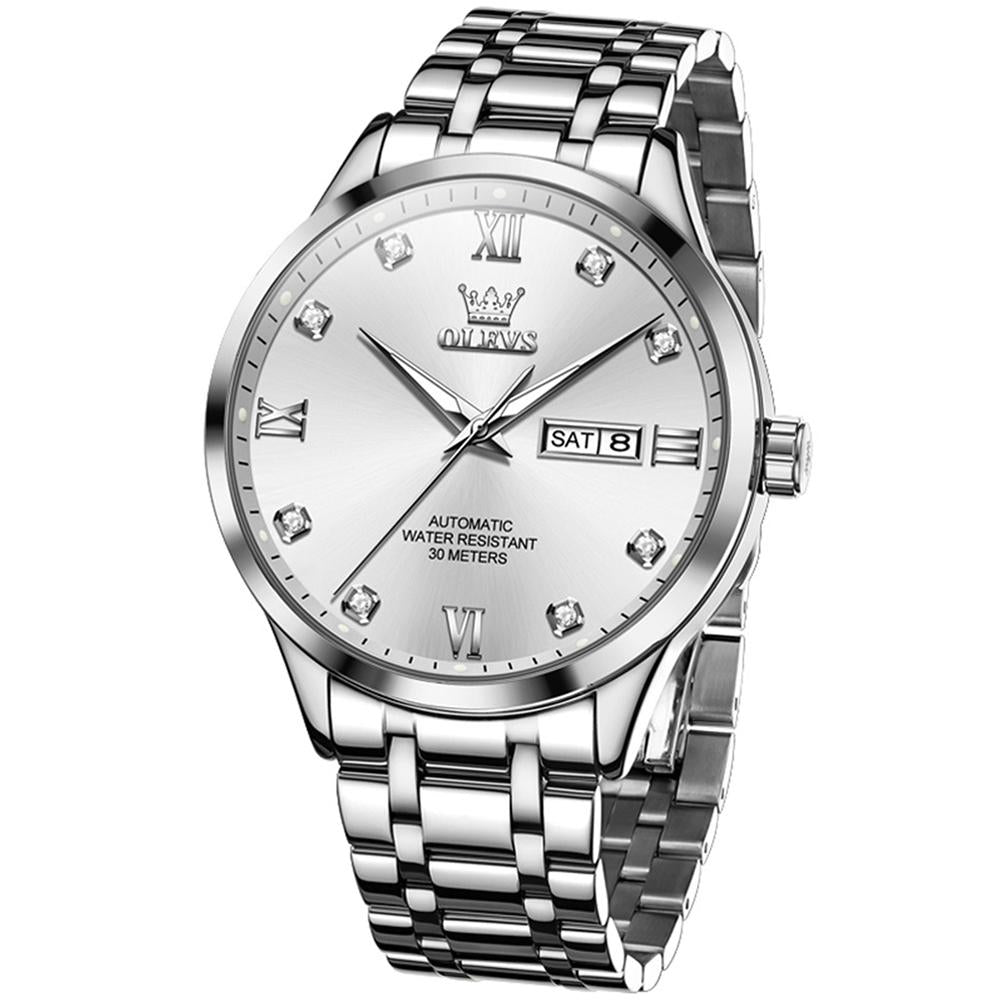 Waterproof Quartz Watch with Diamond Roman Scale for Men – White + Silver