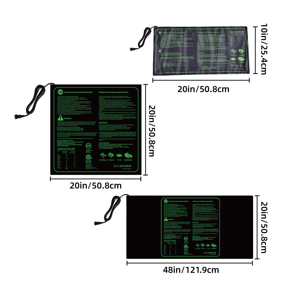 Enhance your gardening success with the Waterproof Seedling Heat Mat, a reliable solution for promoting faster seed germination and plant growth. This heat mat is ETL certified, providing reliable and consistent heat distribution for various indoor gardening and propagation needs. Its waterproof design makes it suitable for use in greenhouses, growing tents, or any indoor environment. Available in three sizes to cater to your specific needs, this heat mat is perfect for seed starting, hydroponics, home brewing, DIY fermentation, and reptile care, offering a stable and controlled heat source that accelerates growth.