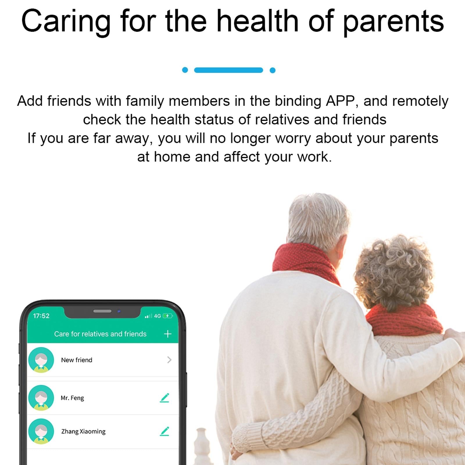 • Functions include female health tracking (menstrual cycle), body temperature monitoring and warning, blood oxygen monitoring, respiration rate, blood pressure monitoring, exercise pedometer, alarm clock, call reminder, calories, distance, and alarm clock reminder