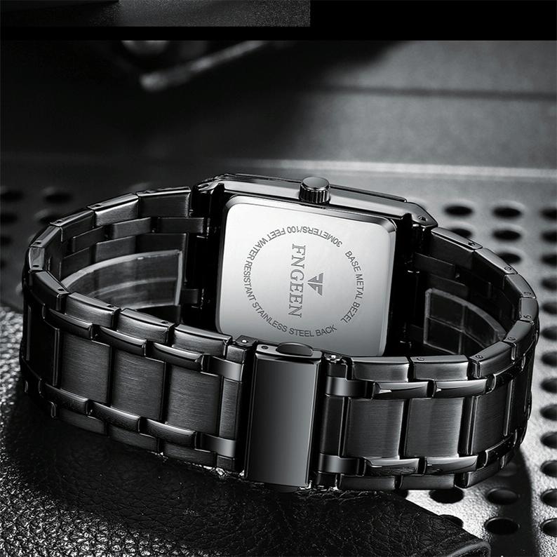 Waterproof Square Men Watch with Calendar – 50m – Black Belt Black Shell Black Surface