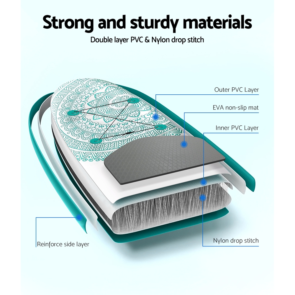 Weisshorn Stand Up Paddle Board 10.6ft Inflatable SUP Surfboard Paddleboard Kayak Surf Green