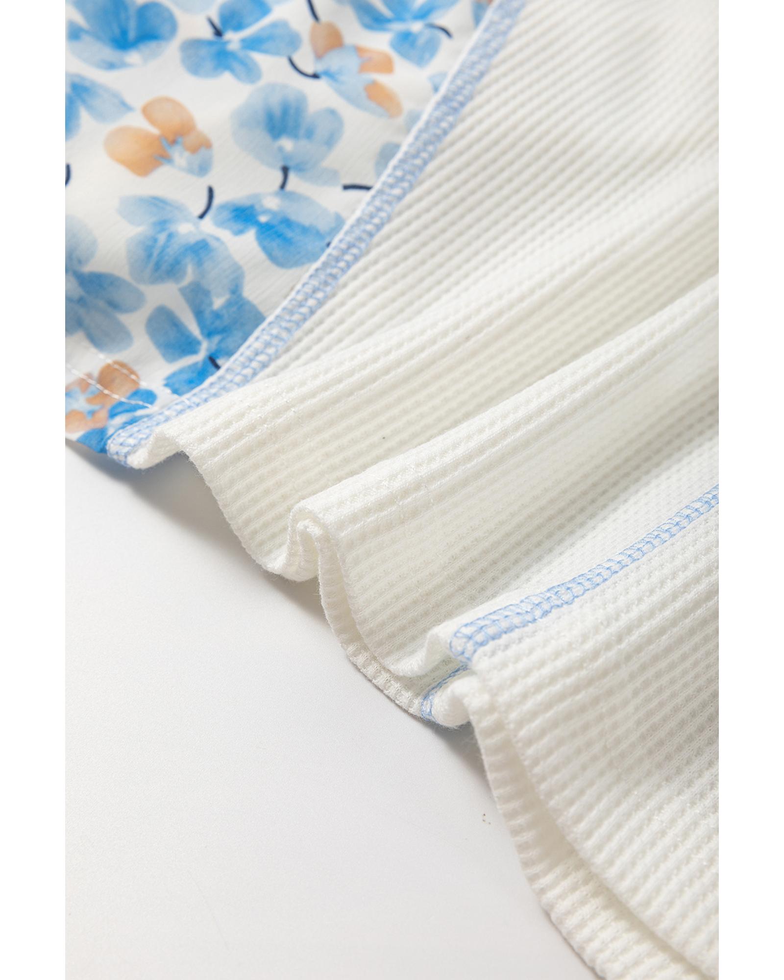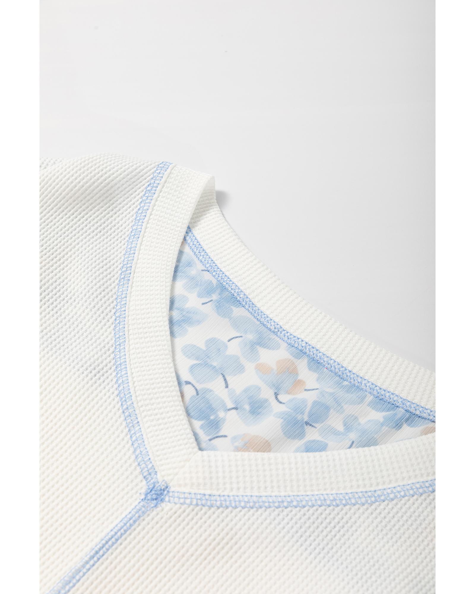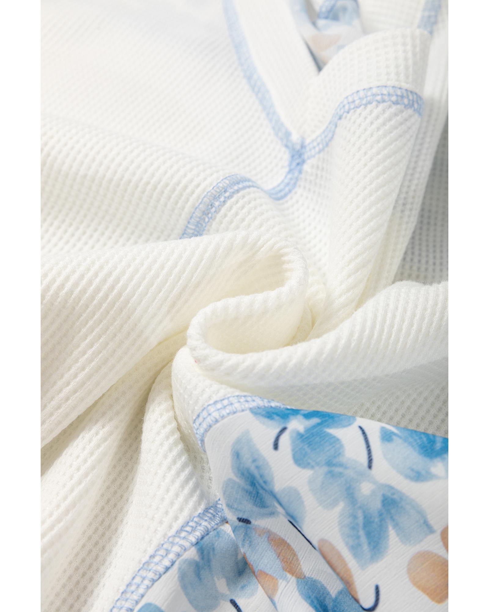 White Abstract Floral Patchwork Batwing Sleeve V Neck Blouse – XL