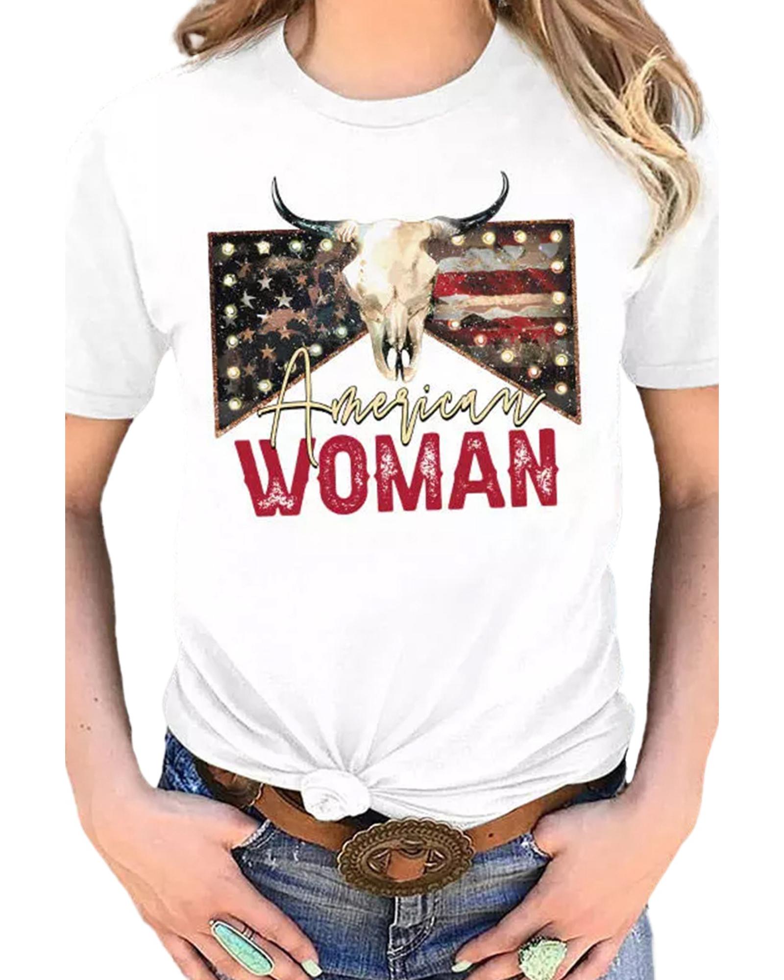White American Woman Bull Skull Graphic T Shirt – 2XL