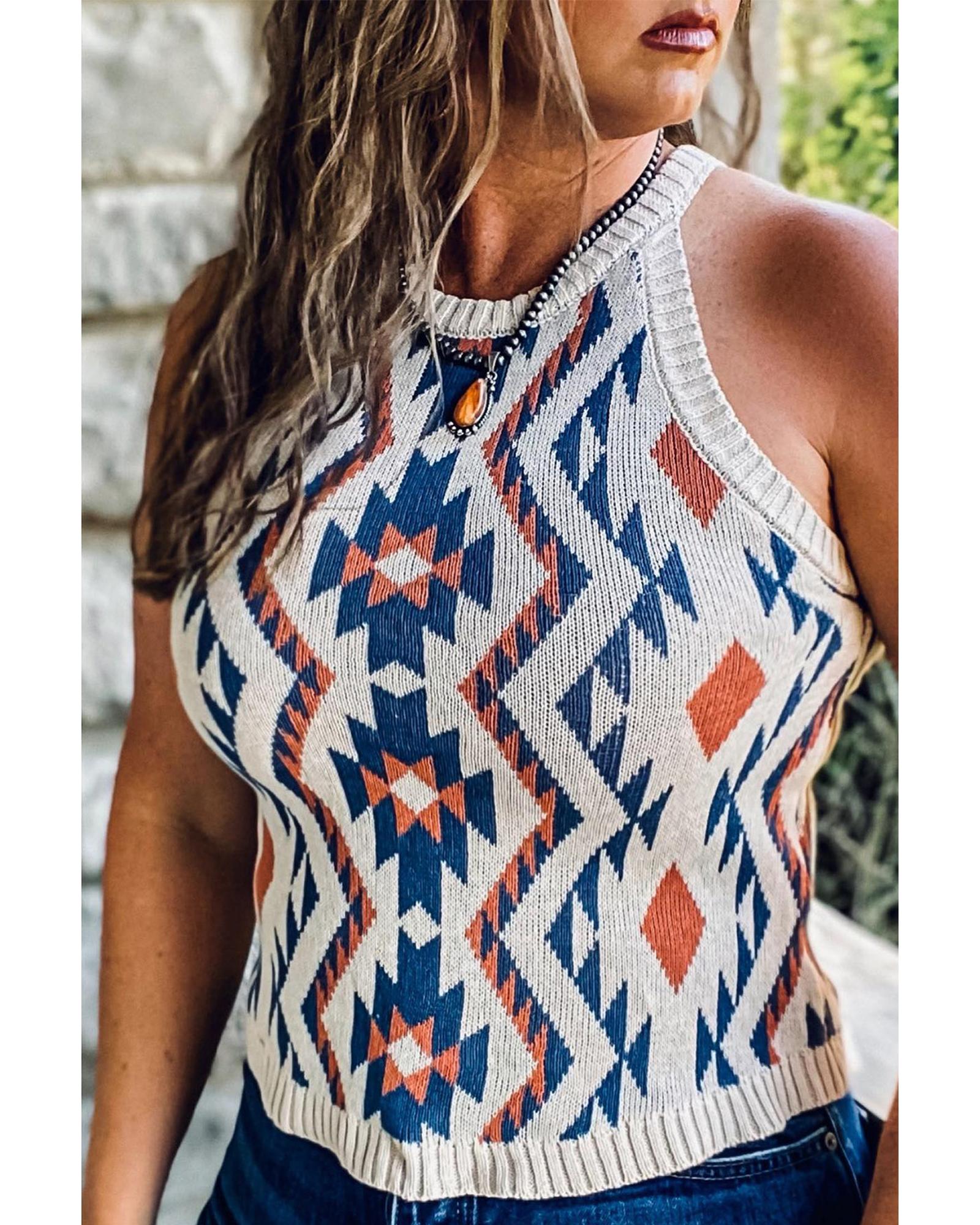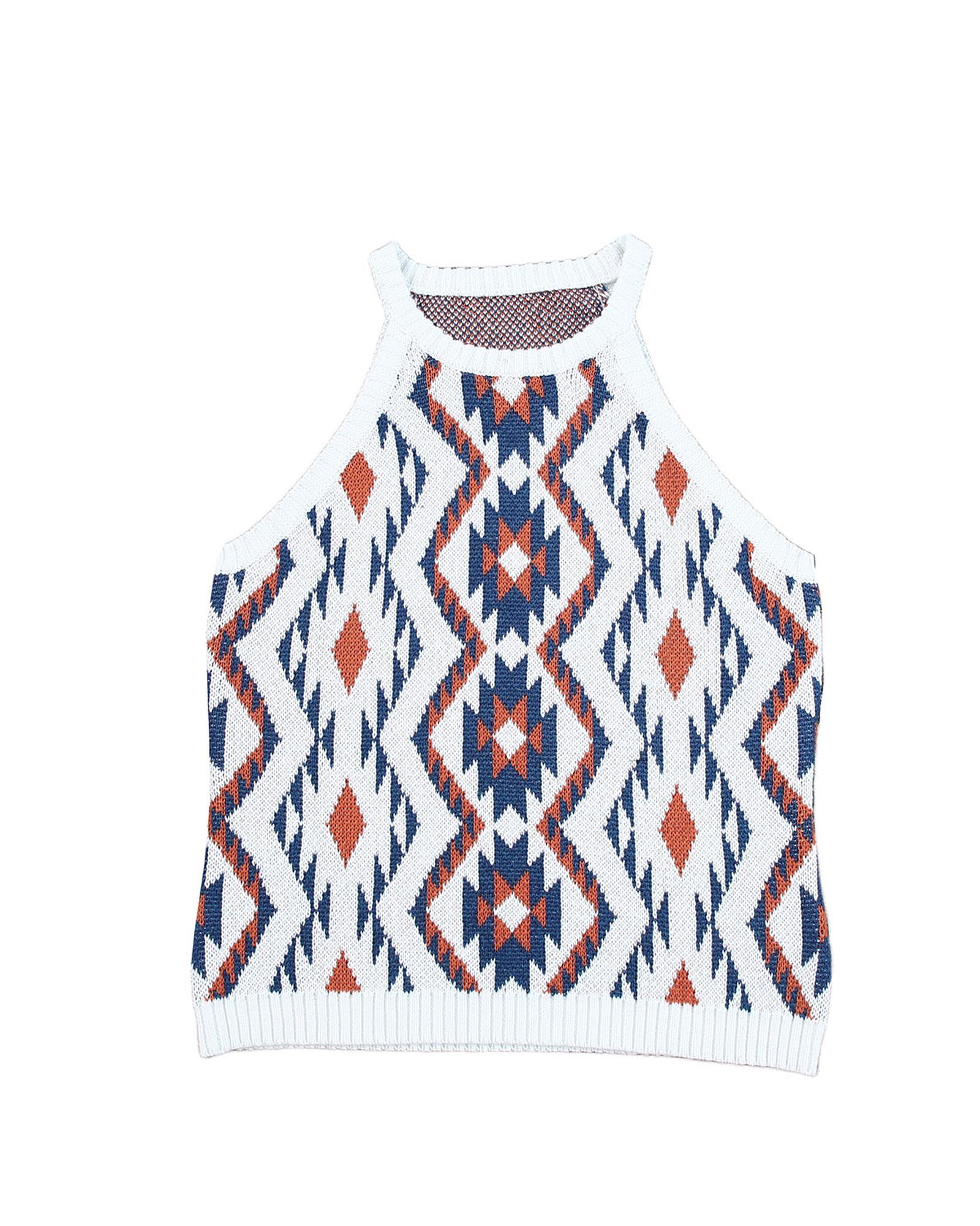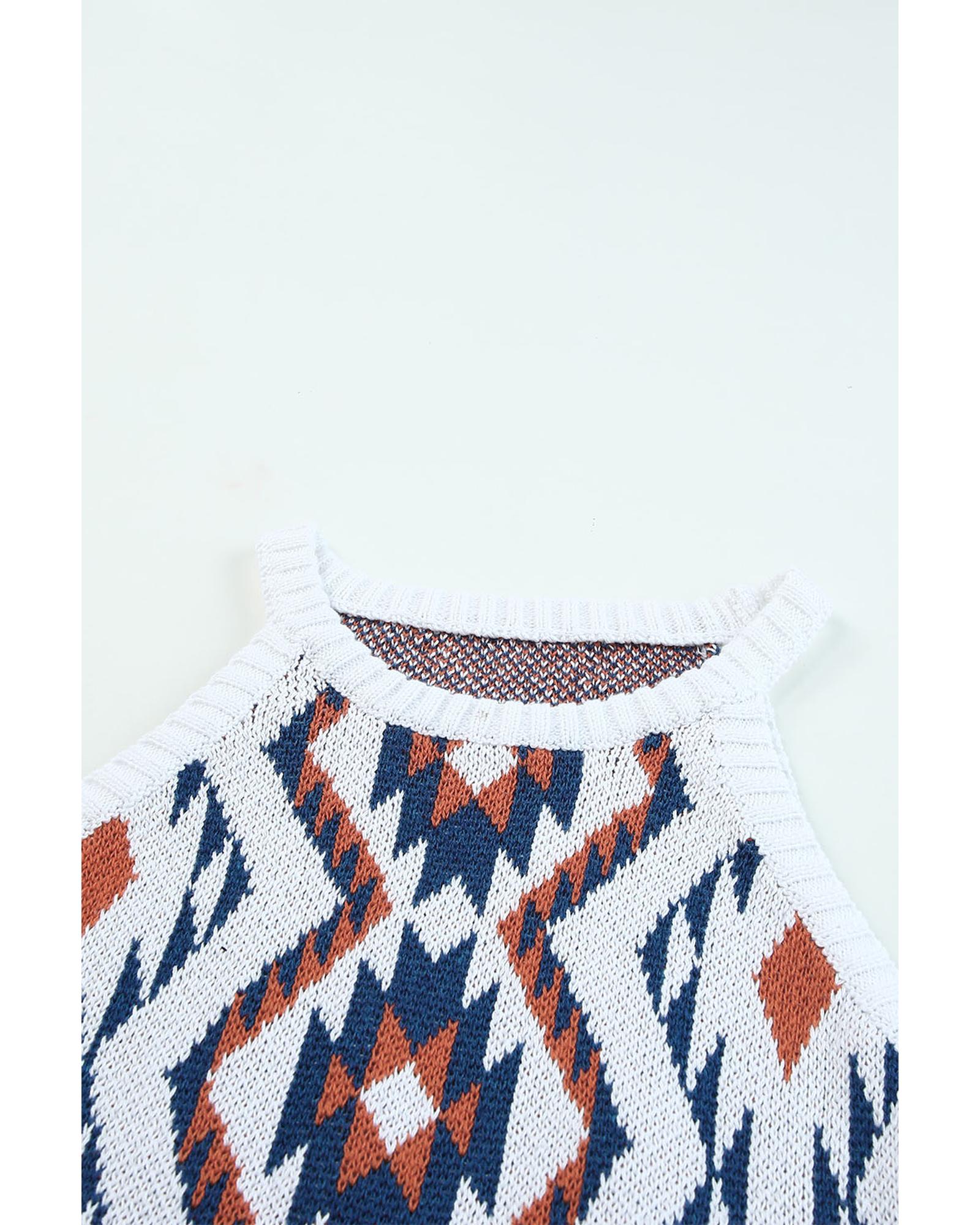 White Bow Pattern Buttoned Side Cropped Sweater Vest - L