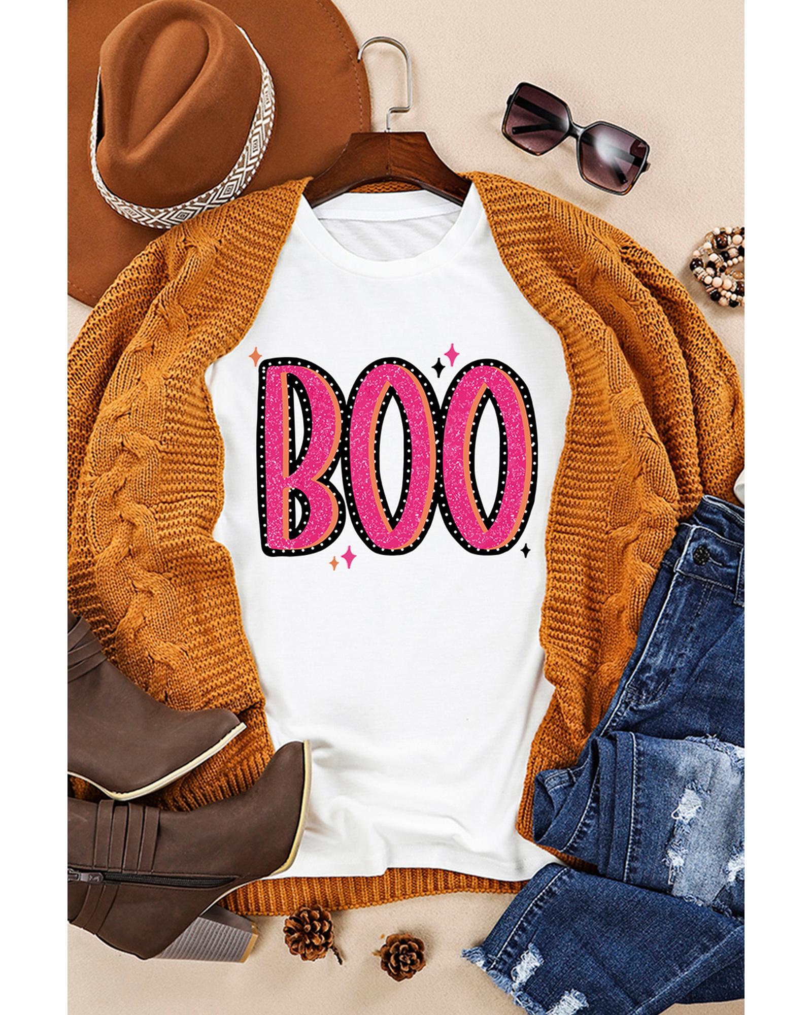 White BOO Crew Neck Graphic T Shirt – 2XL