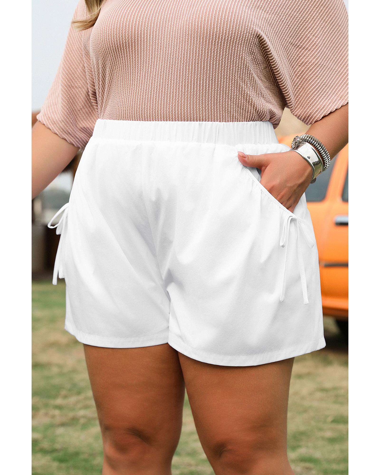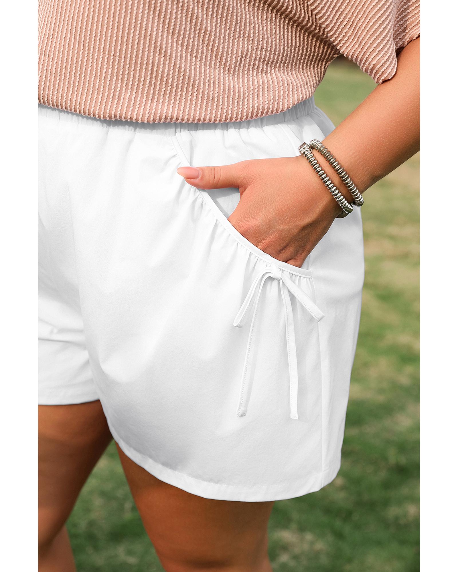 White Bow Decor Pockets Plus Size Shorts – 2X