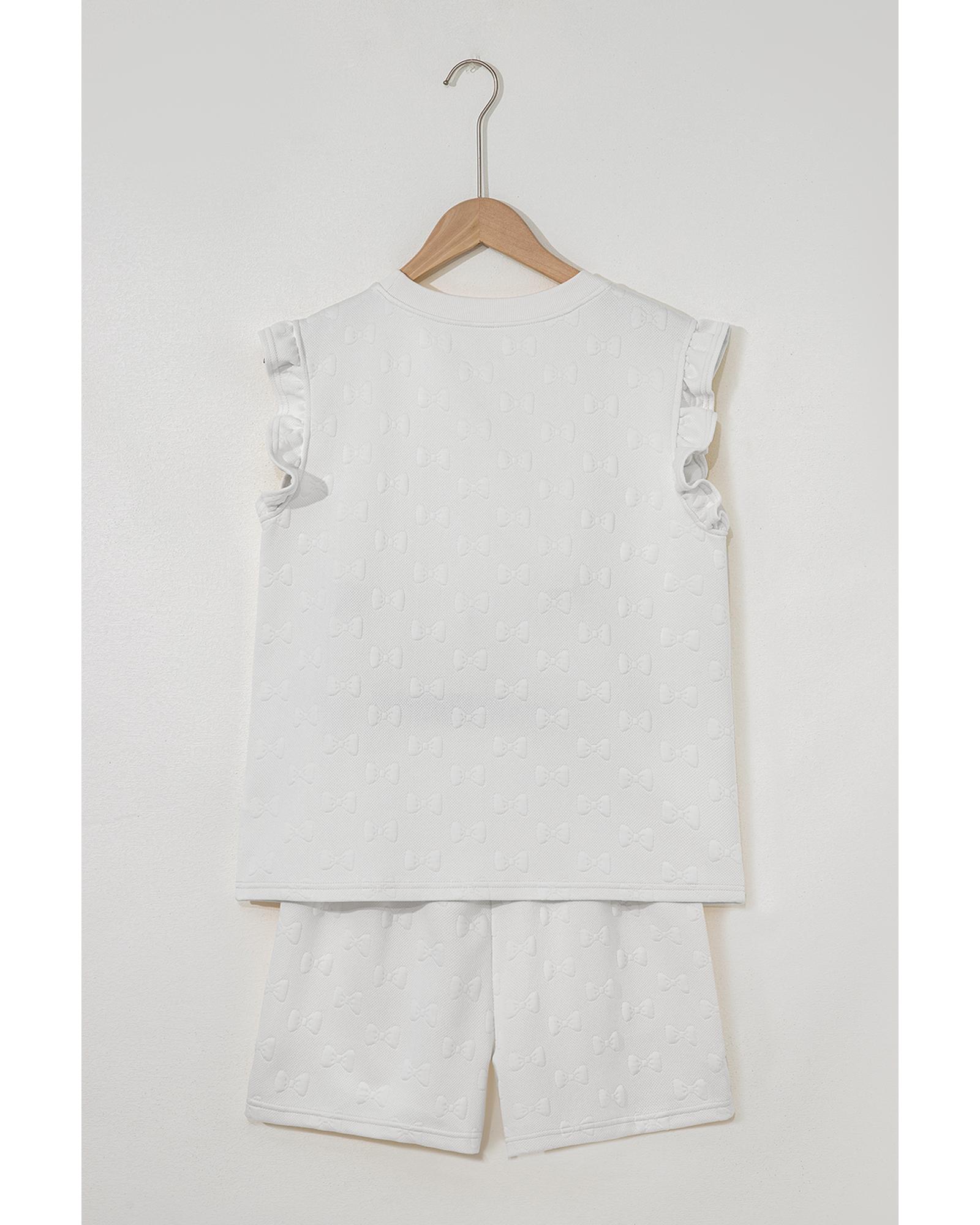 White Bow Jacquard Ruffle Sleeve Short 2pcs Outfit – XL