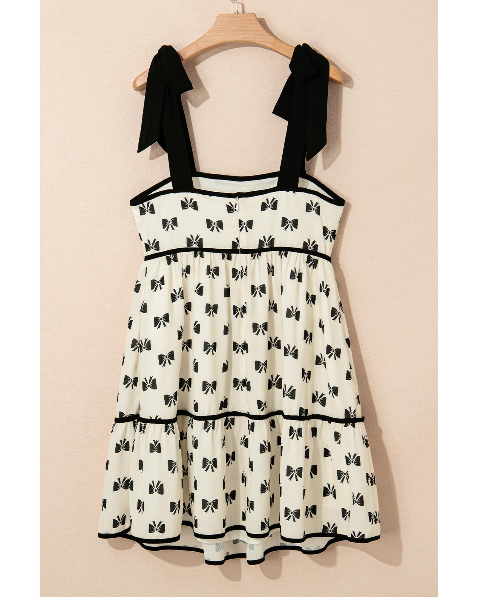 White Bow Knot Color Contrast Trim Knotted Shoulder Mini Dress – L