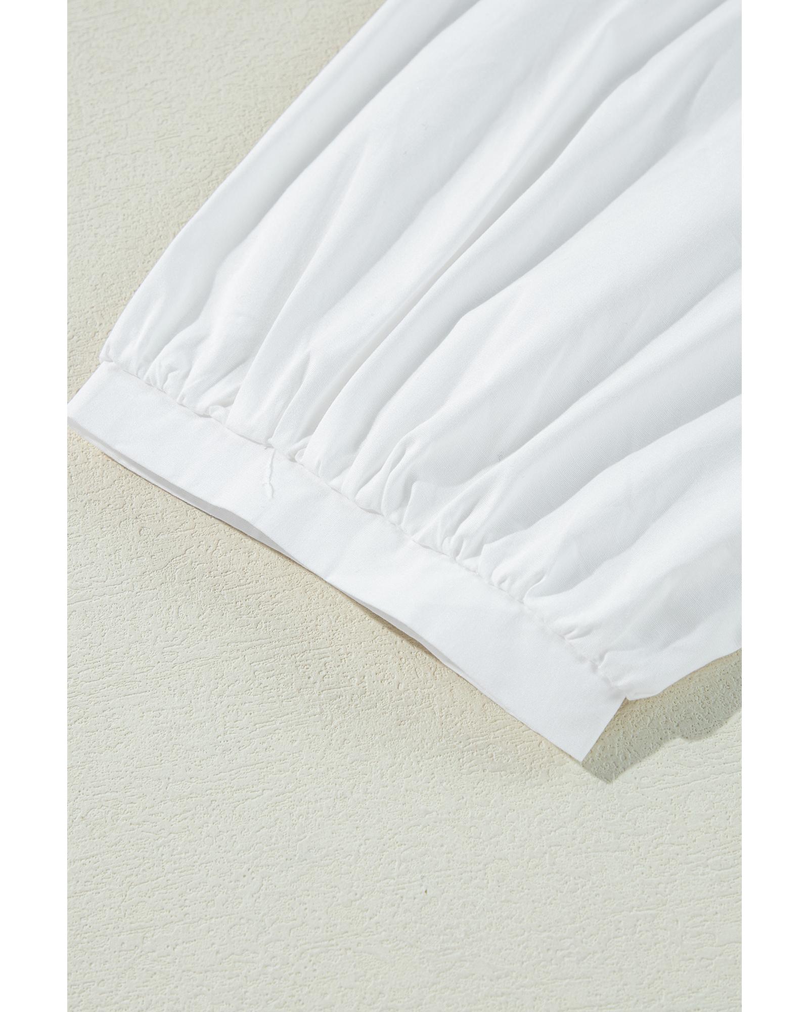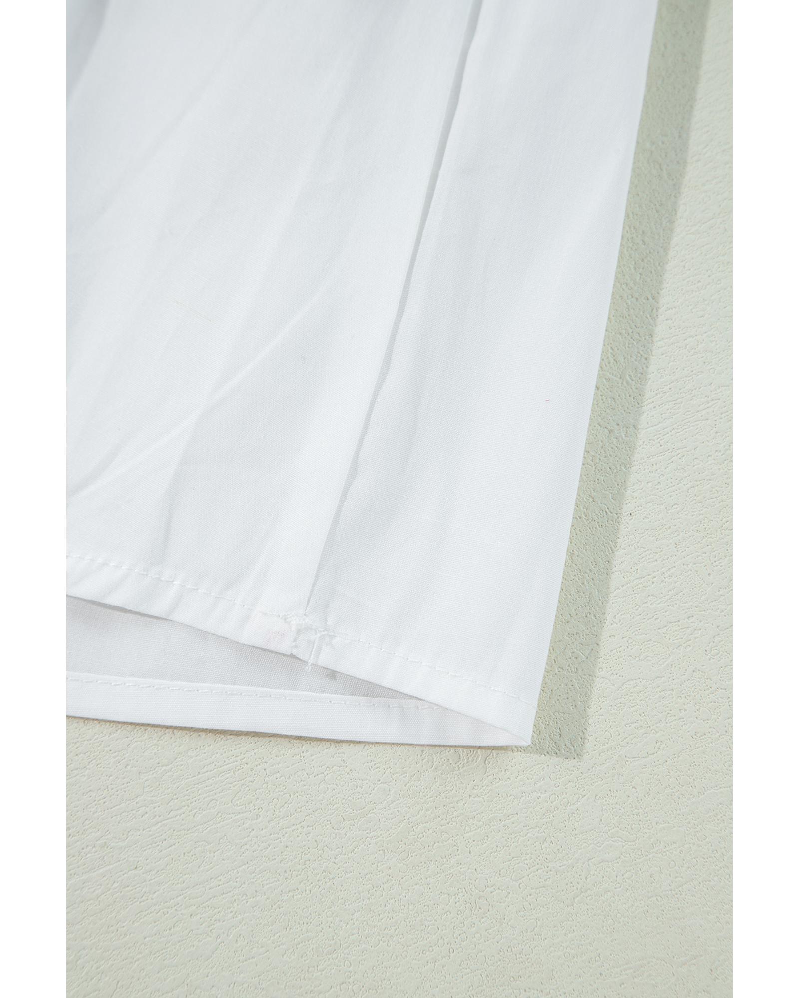 White Bow Knot Cutout Back Loose Fit 3/4 Sleeve Blouse – L