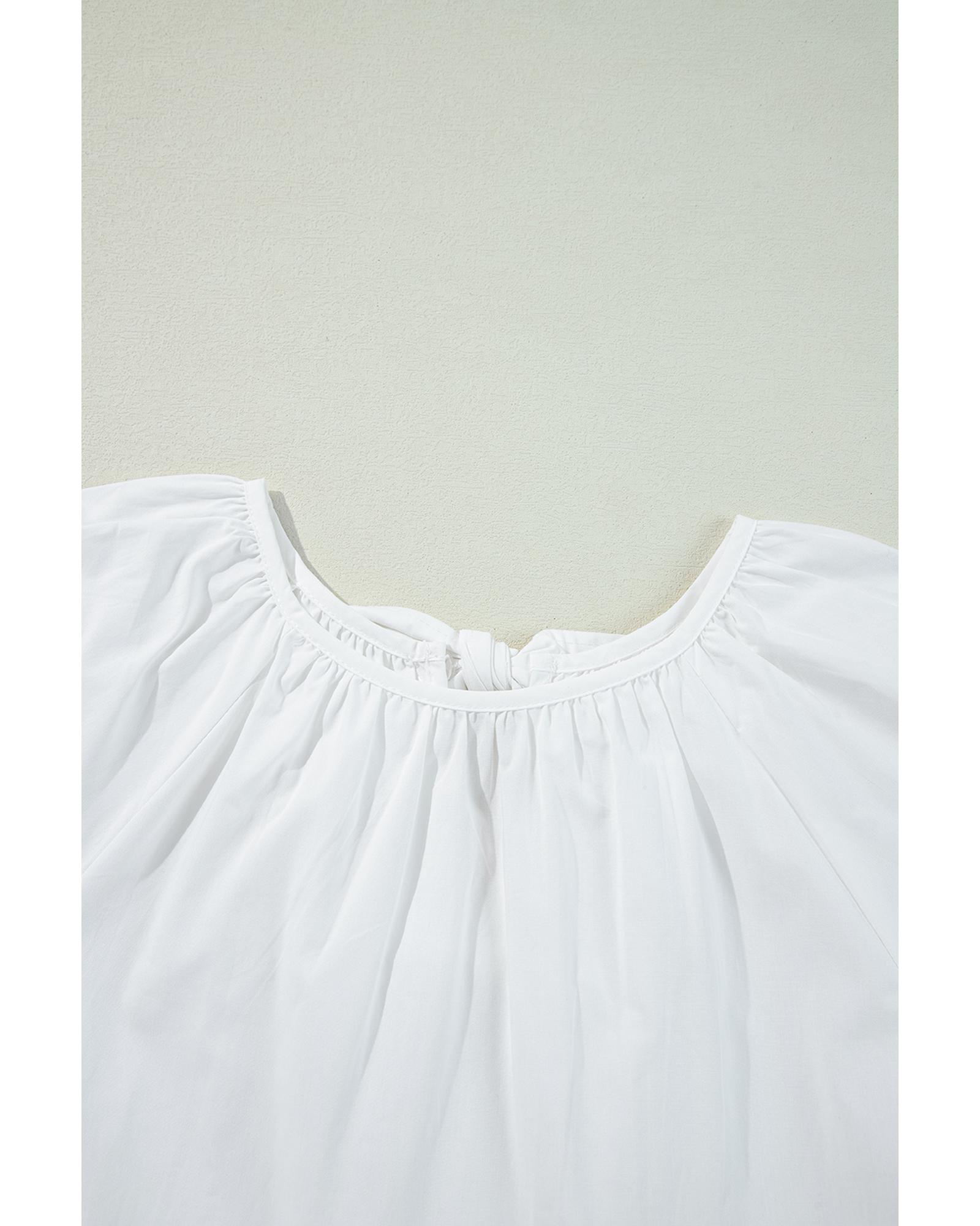 White Bow Knot Cutout Back Loose Fit 3/4 Sleeve Blouse – S