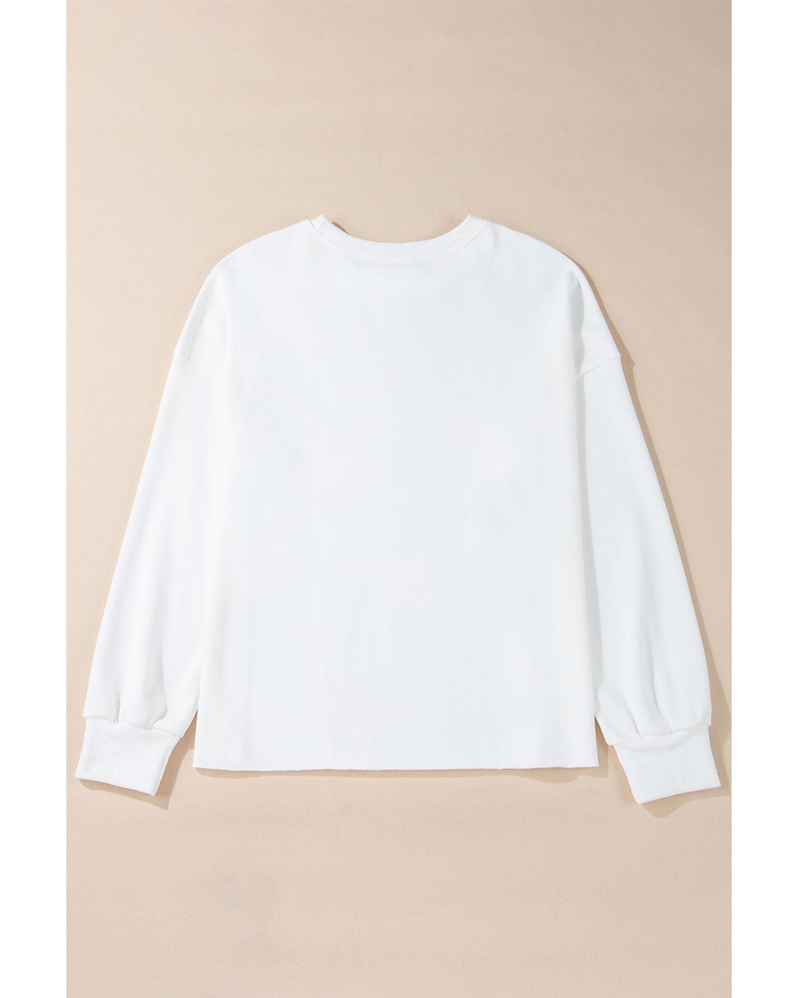 White Bowknot Pattern Drop Shoulder Loose Sweatshirt – XL