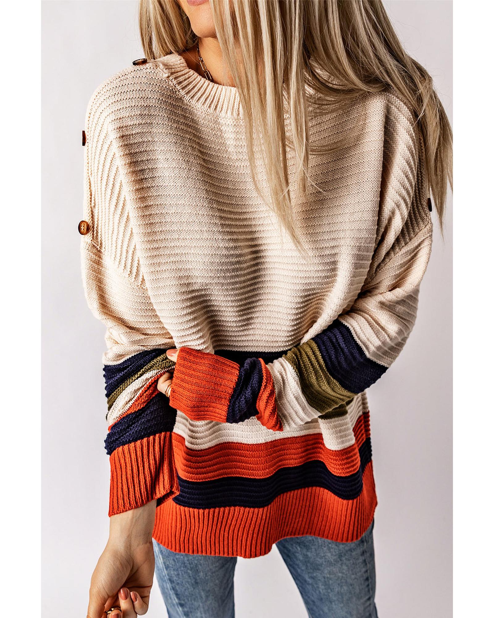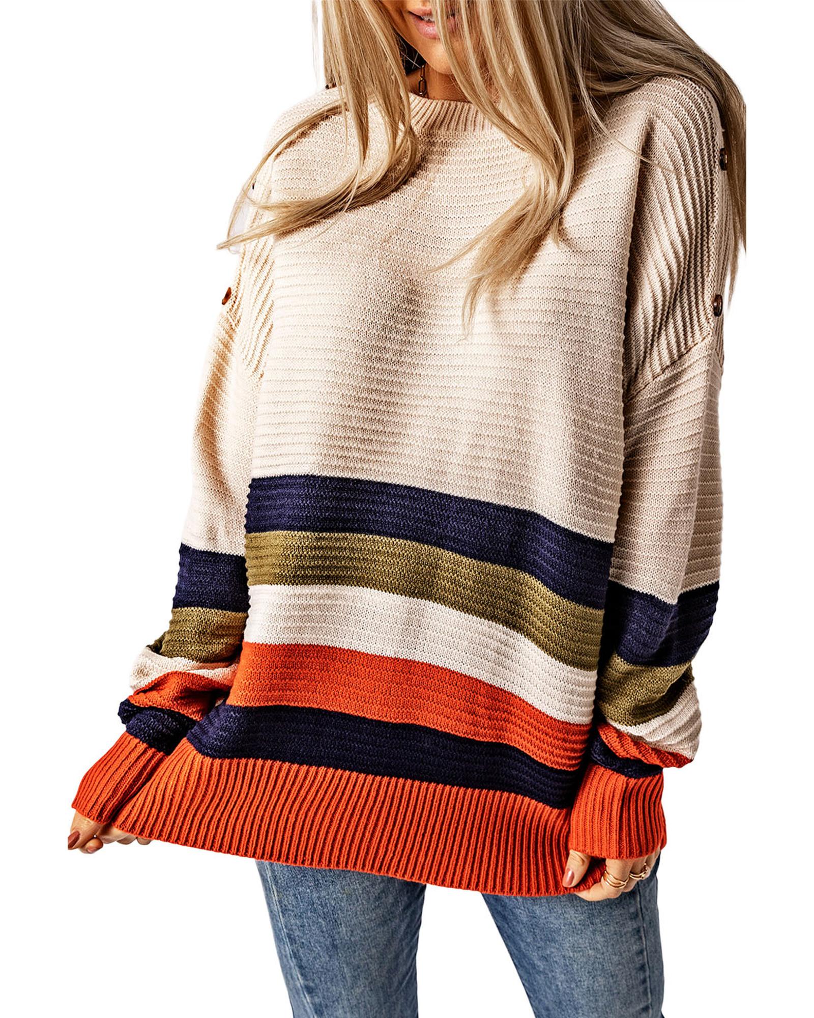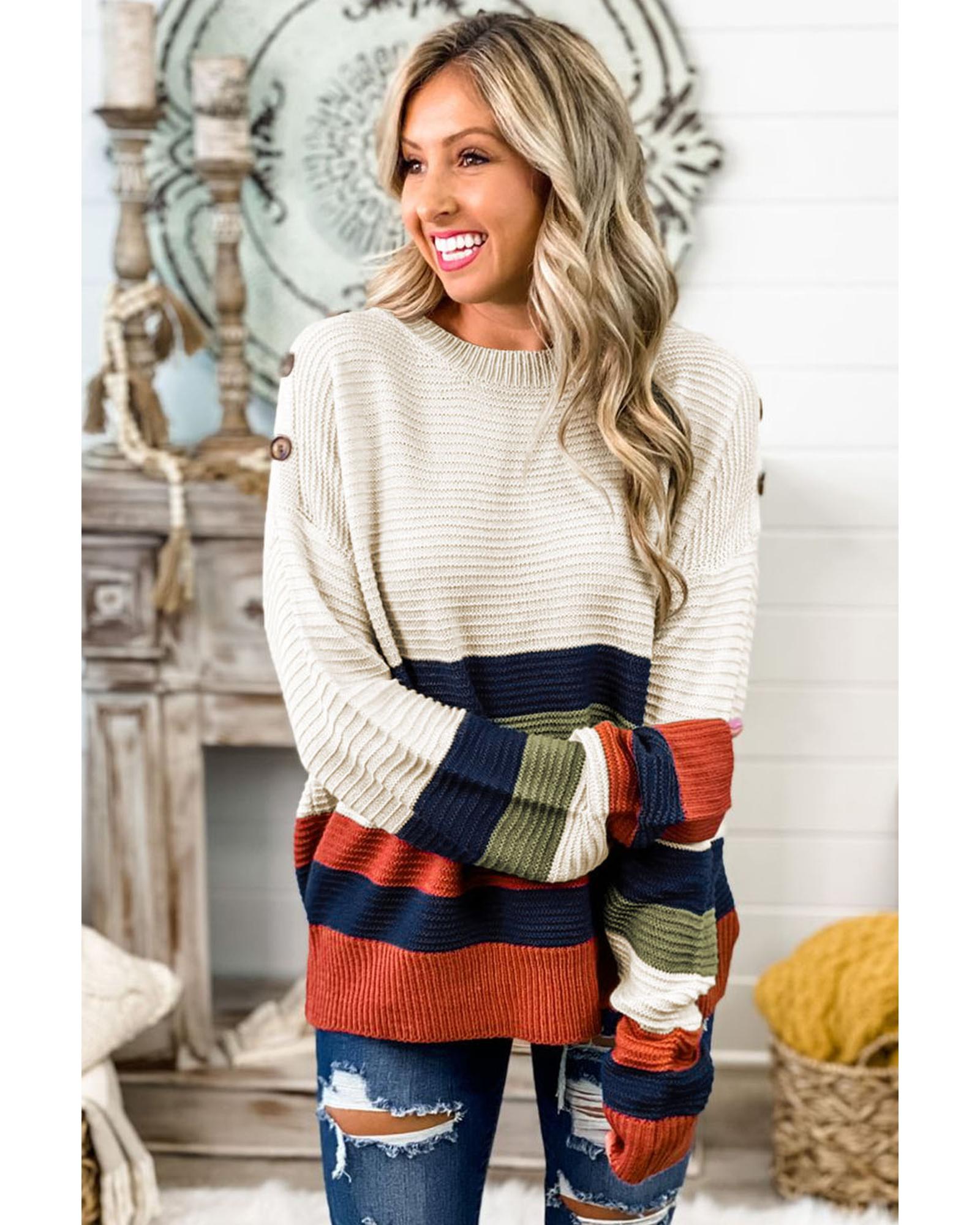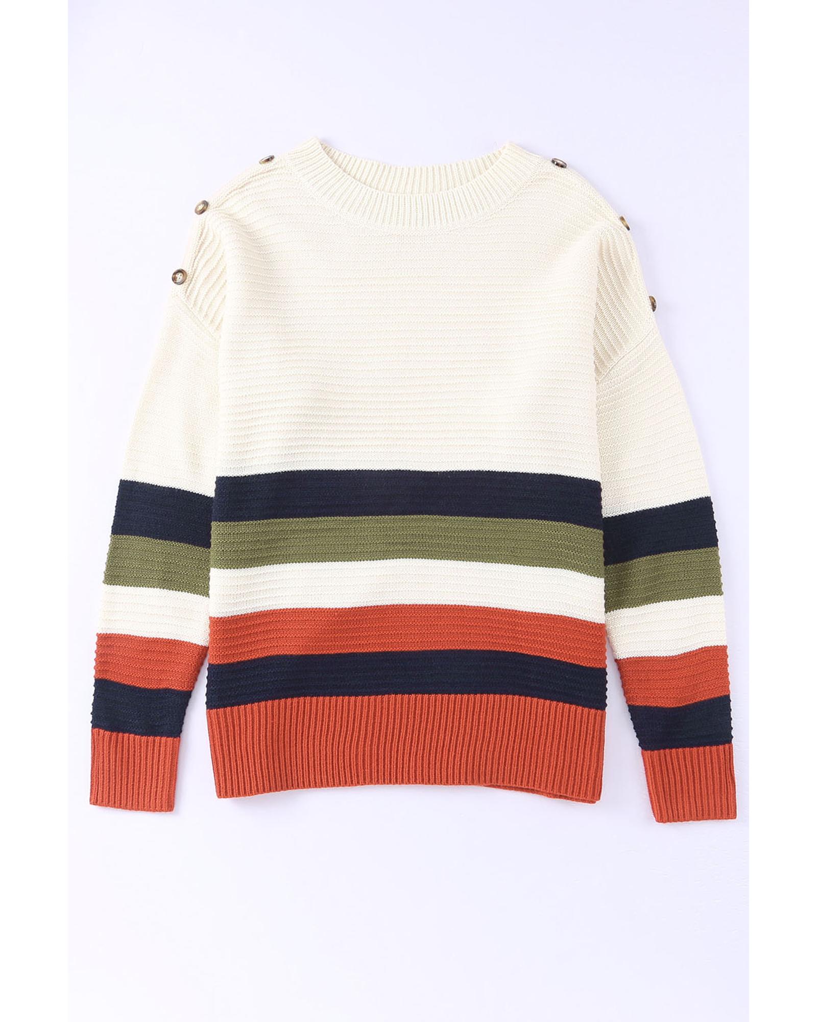 White Buttoned Shoulder Drop Shoulder Striped Sweater - S Original price was: $70.99.Current price is: $37.99.