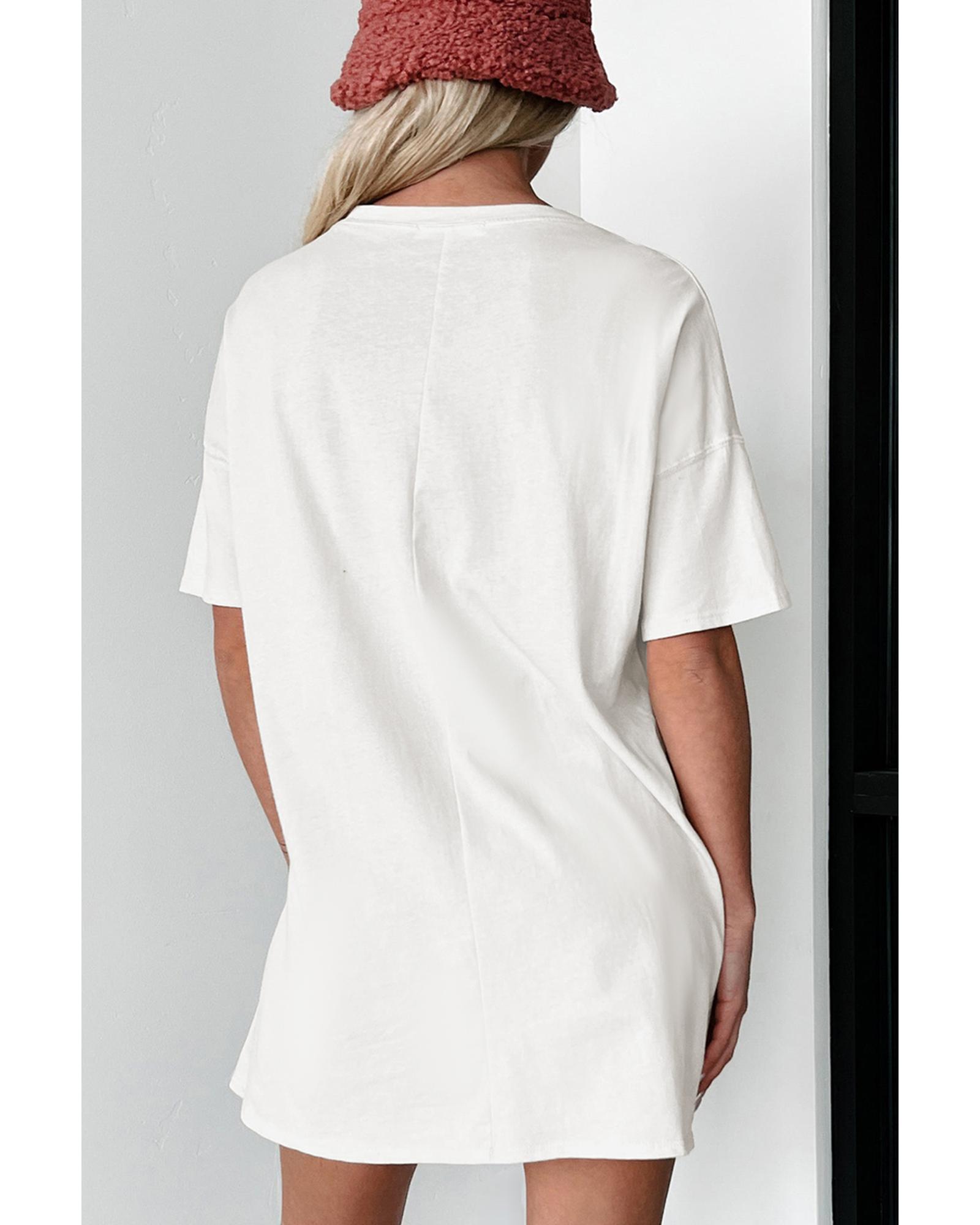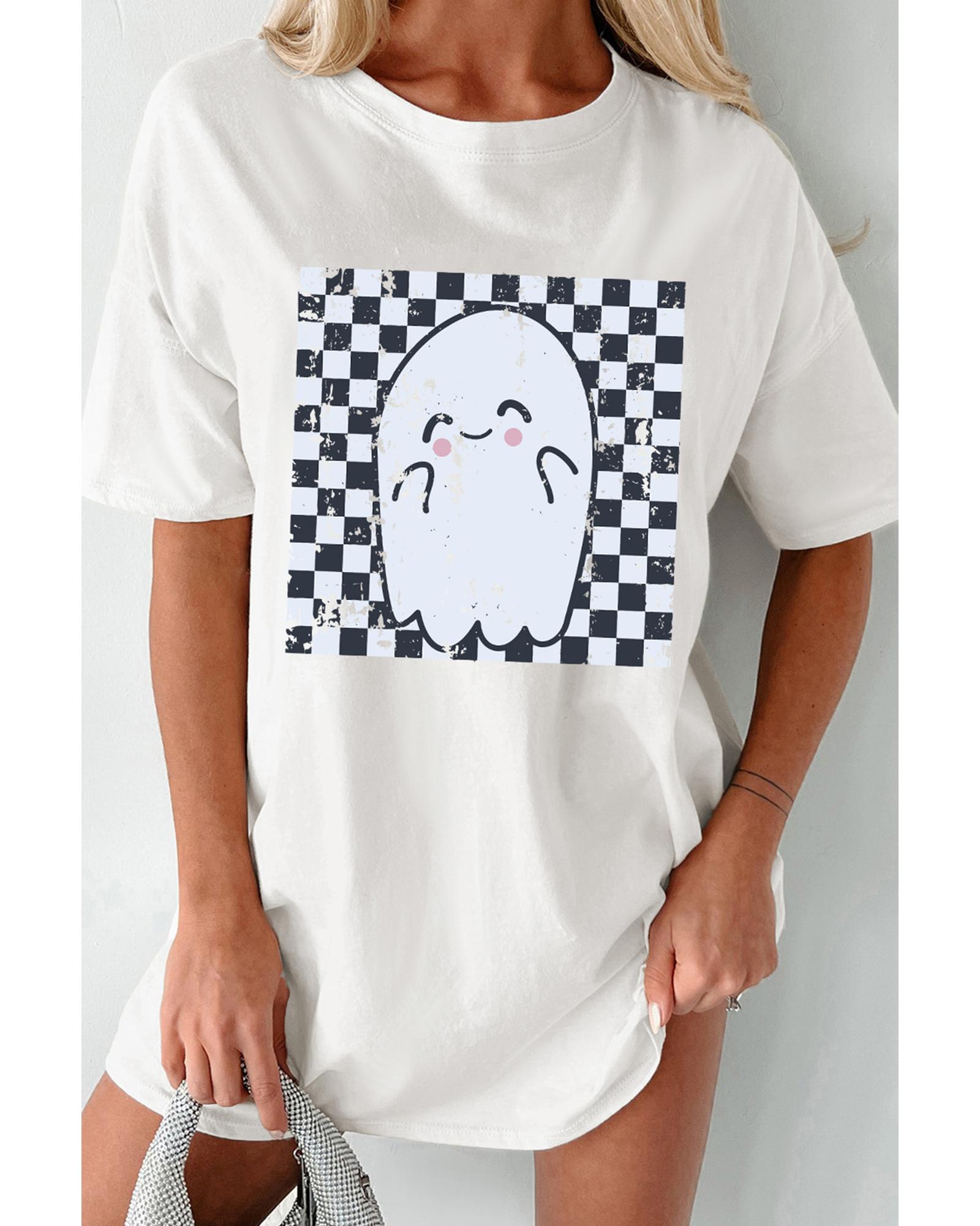 - White Checkered Ghost Print Crew Neck Oversized T