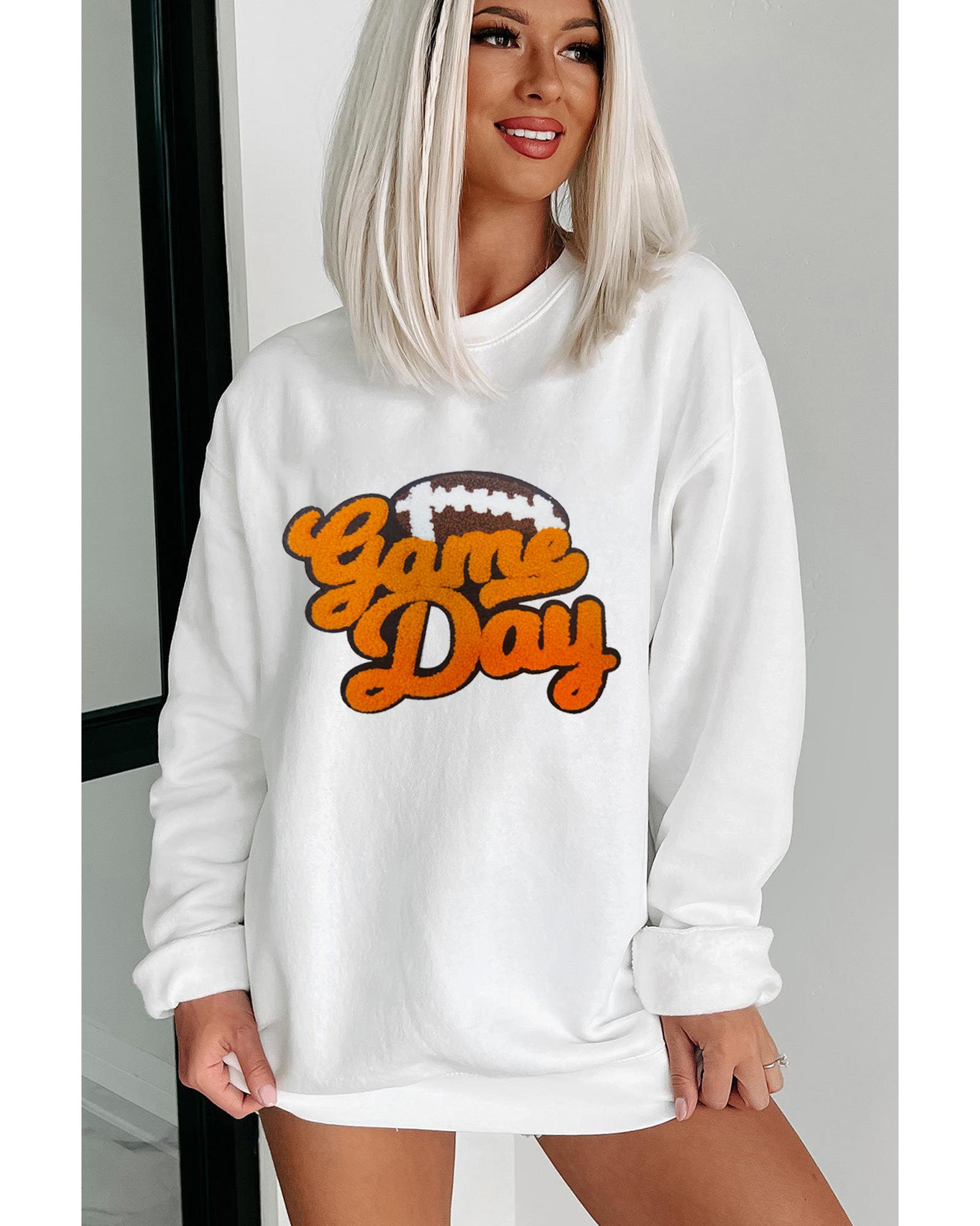 White Chenille Game Day Rugby Football Pattern Pullover Sweatshirt – XL