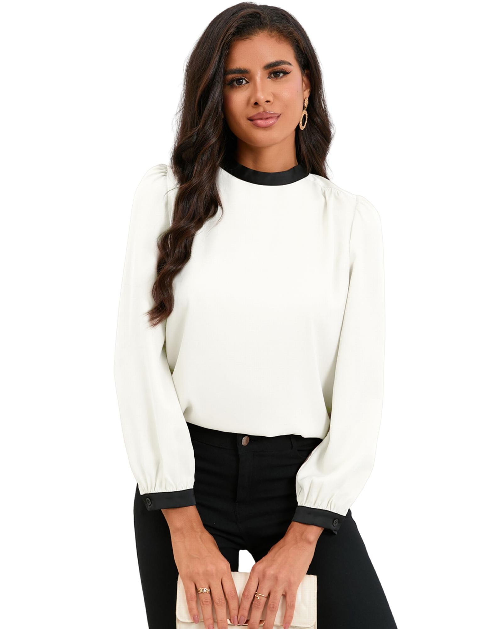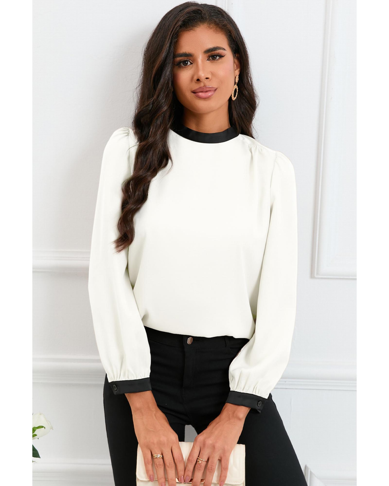 Multicolour Abstract Print 3/4 Puff Sleeve Ruffle Blouse - M