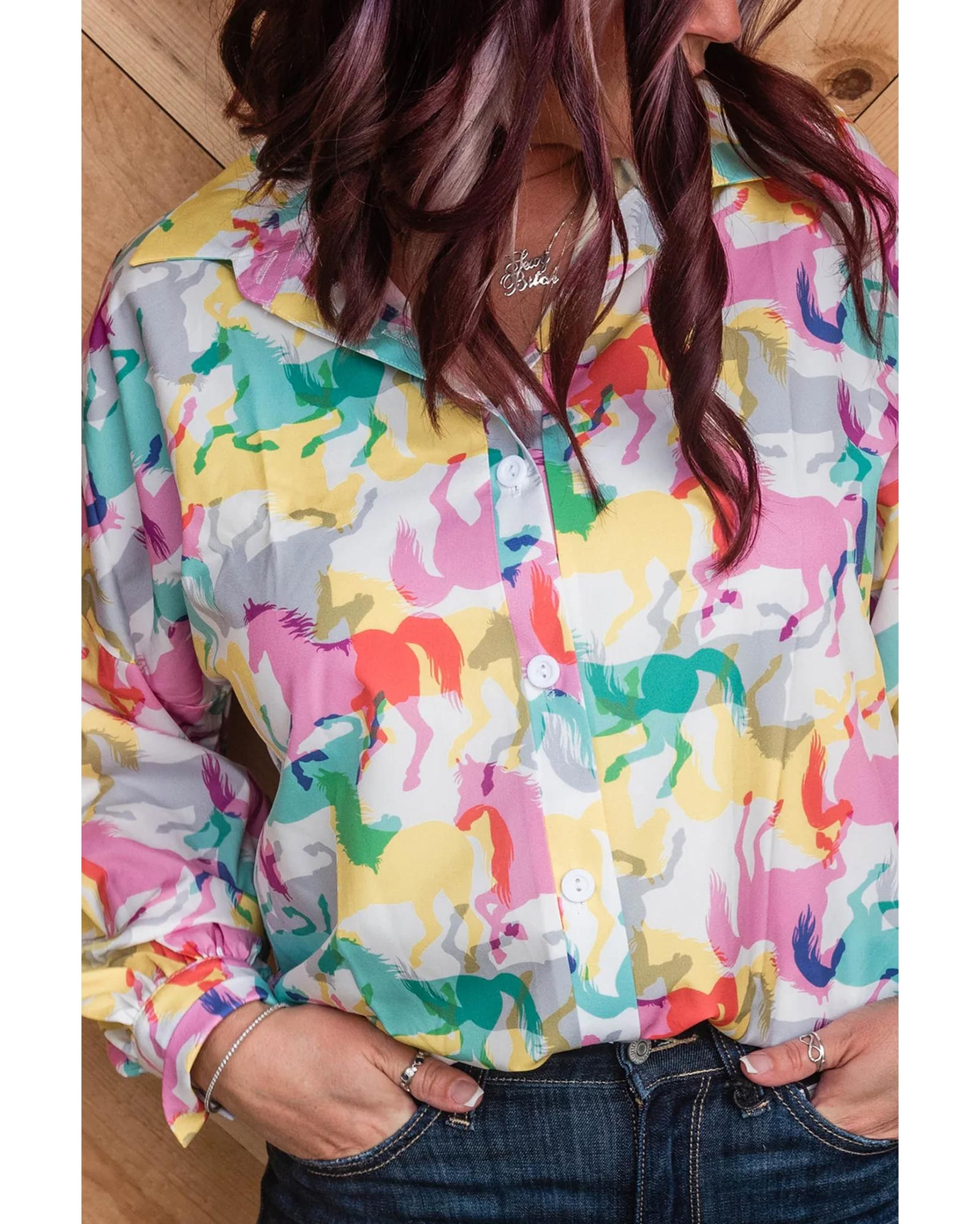 • Vibrant colorful horse print for a unique and playful look