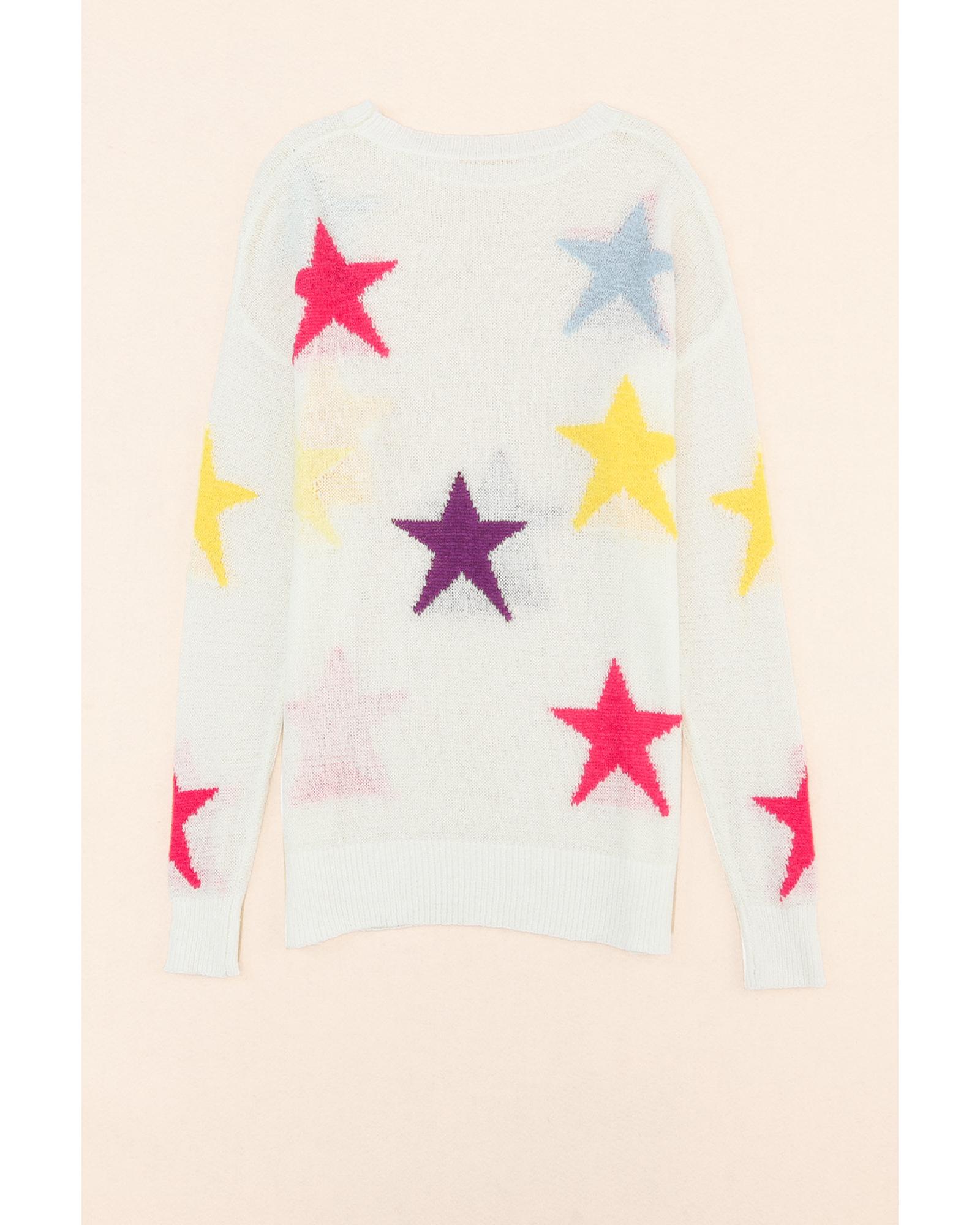 White Colorful Star Pattern Loose Sweater – L