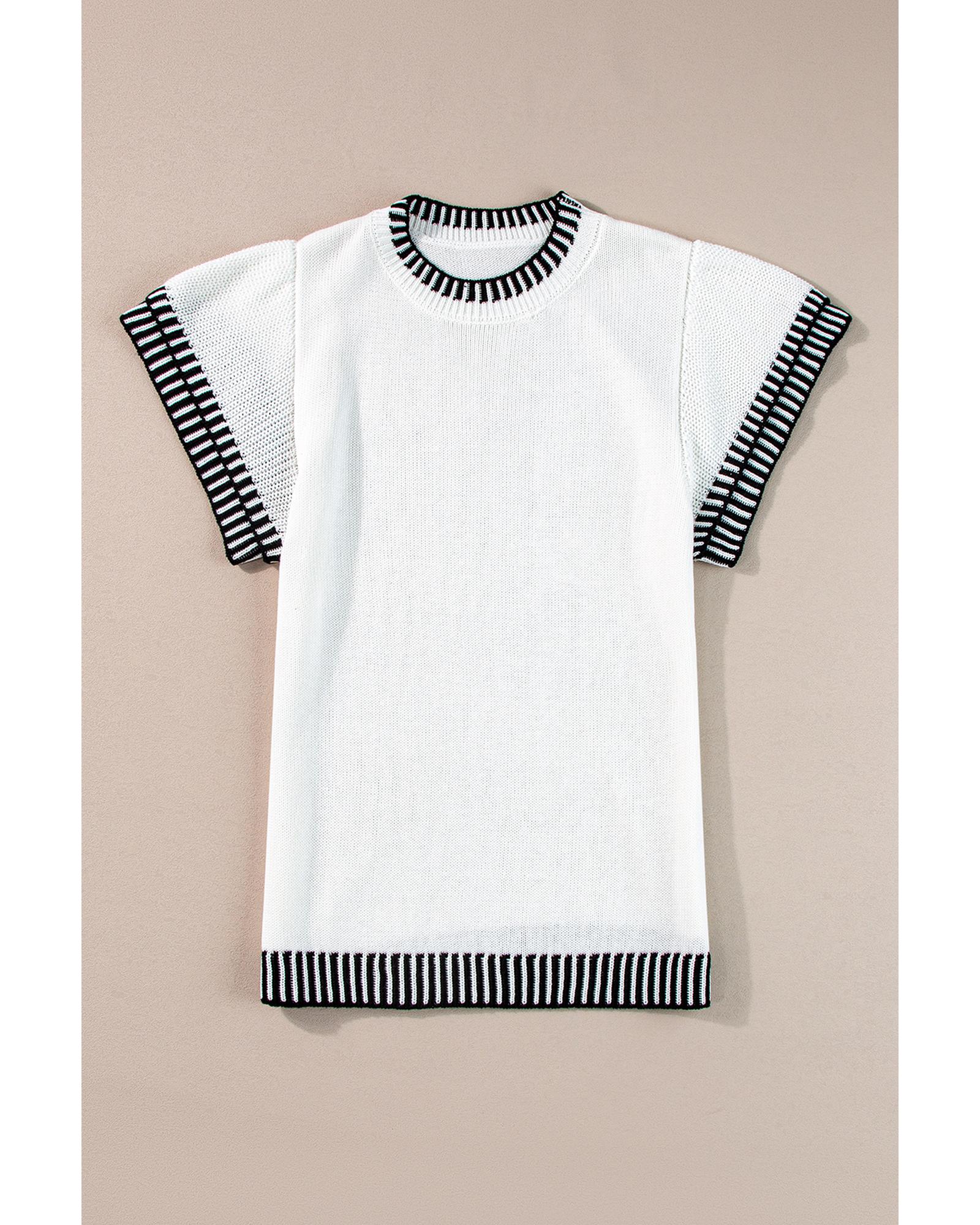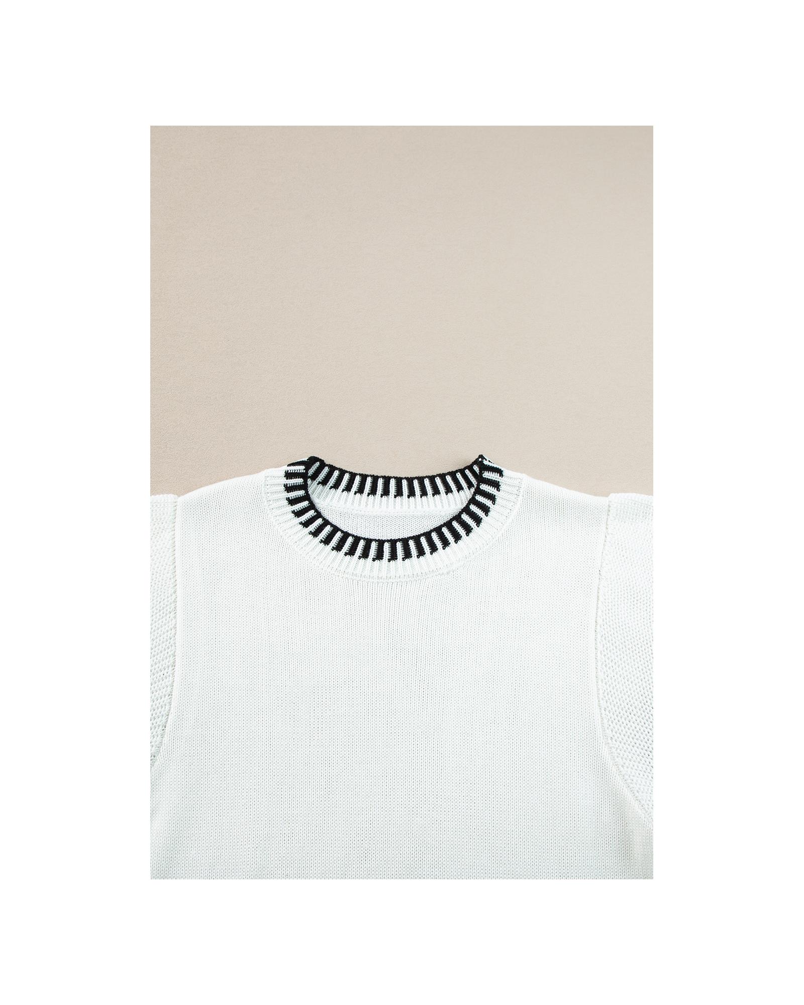 - White Contrast Trim Round Neck Batwing Sleeve Knitted Top