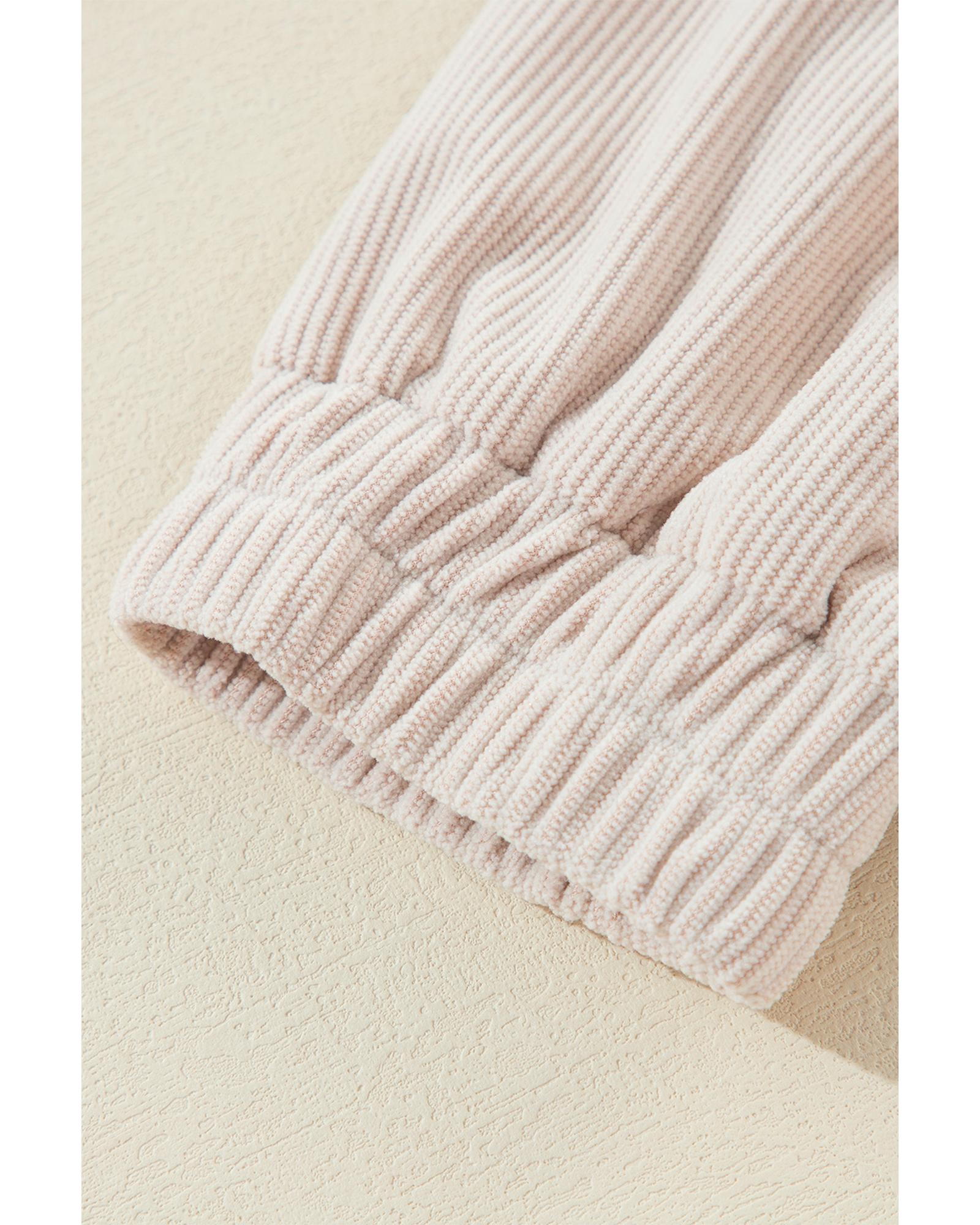 White Corduroy Drawstring Hooded Pocket Zip Up Jacket – L