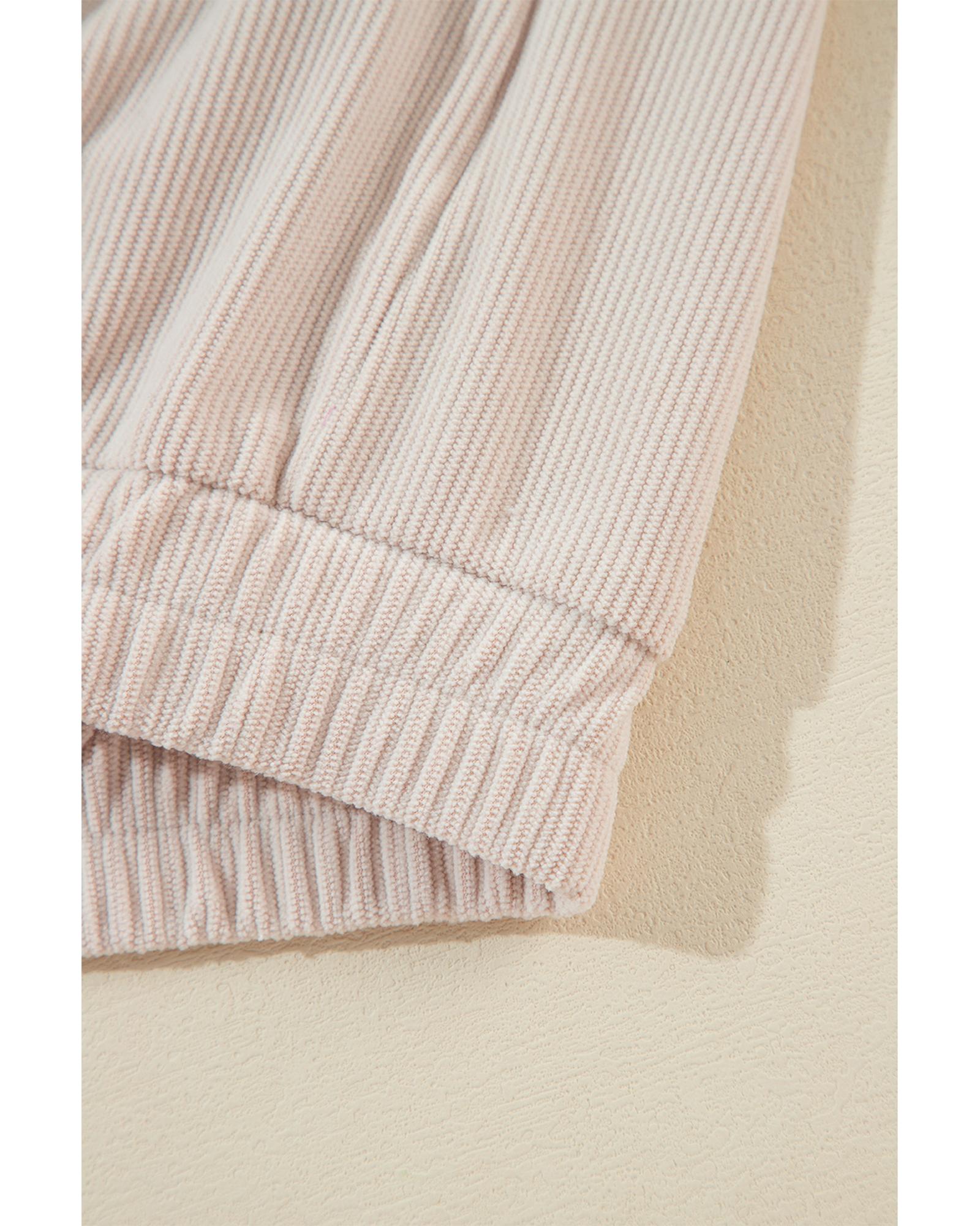 White Corduroy Drawstring Hooded Pocket Zip Up Jacket – M