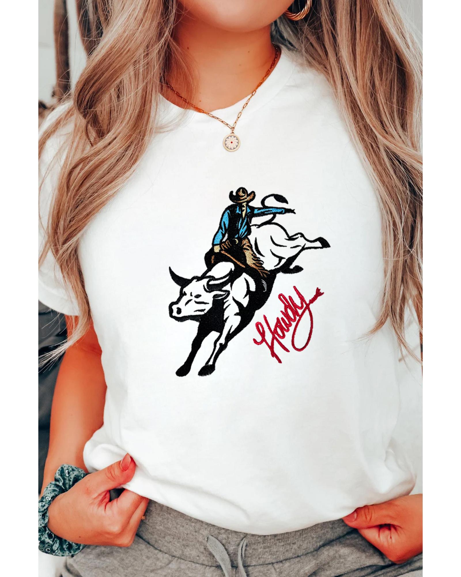 White Cowboy Howdy Embroidered Western Fashion T Shirt – 2XL